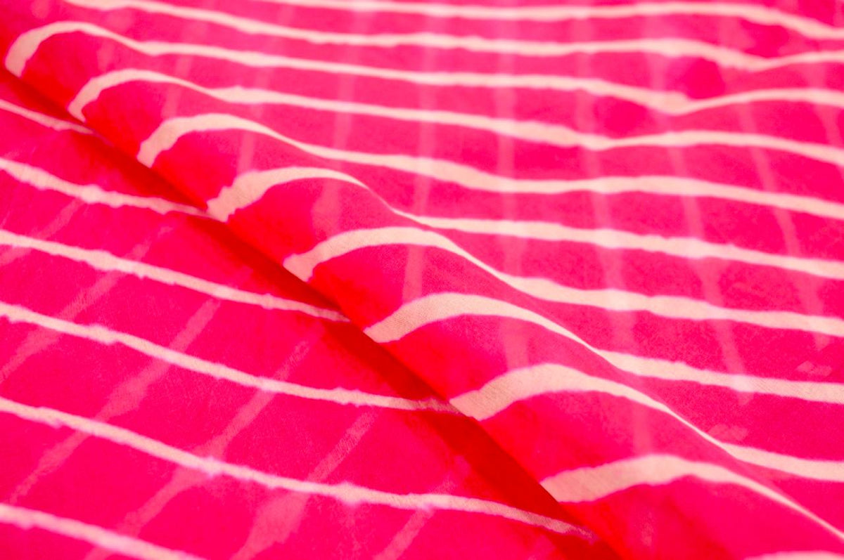 PINK YING-YANG HALF FULL HALF EMPTY POPPY FLOWER BANDHANI SILK SAREE