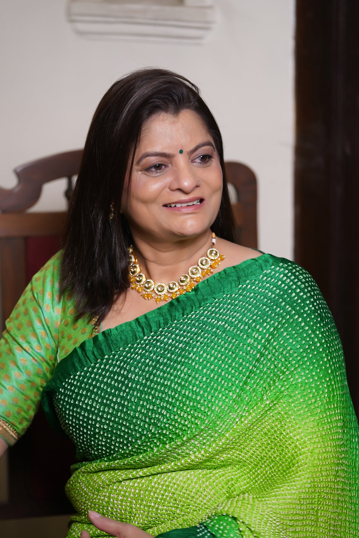 EMERALD GREEN ETERNAL DOTS BANDHANI SILK SAREE