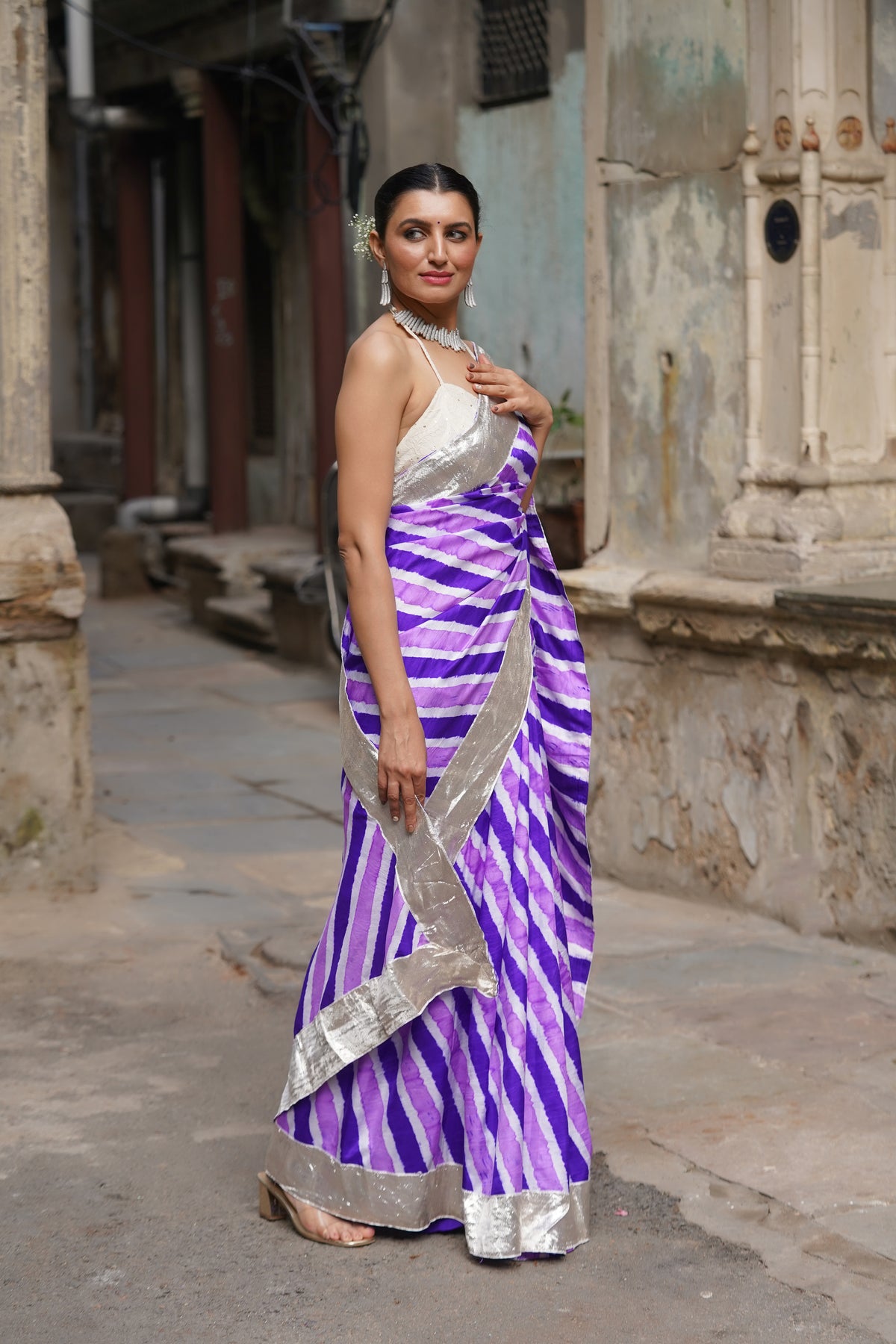 PURPLE LEHERIYA SILK SAREE WITH LAMPI BORDER
