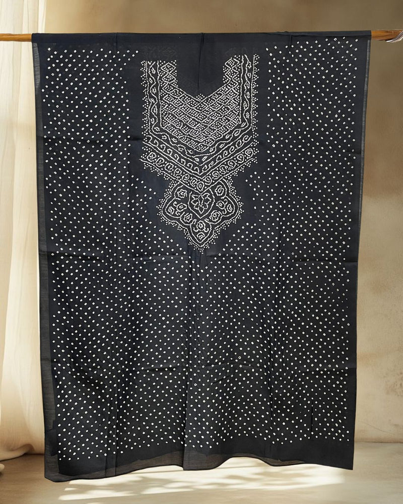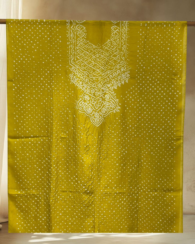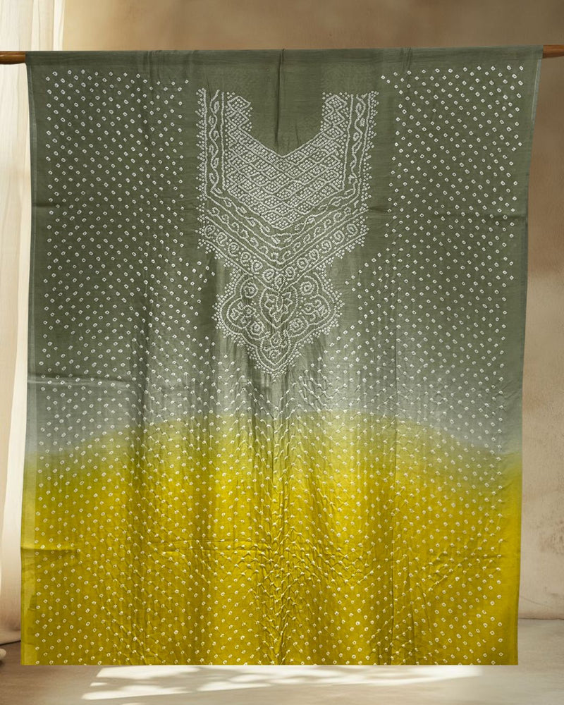 MUSTARD YELLOW - GREEN SHADED YOKE BANDHANI SILK FABRIC
