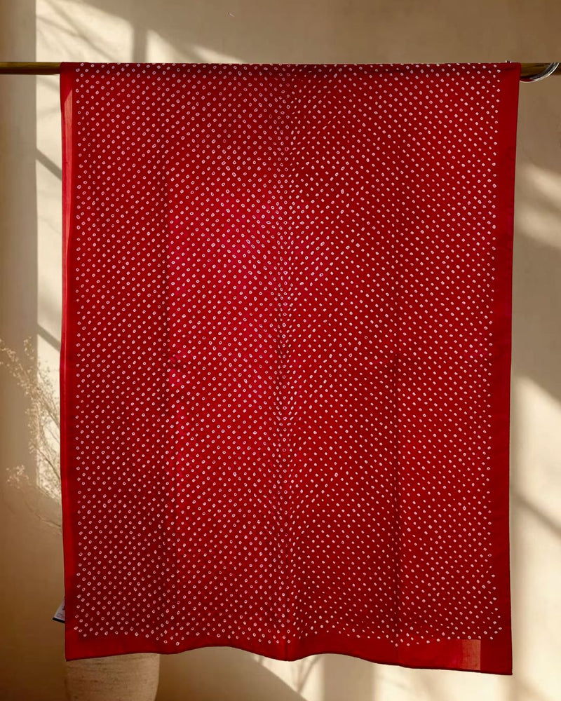 RED OVERALL DOT BANDHANI SILK FABRIC