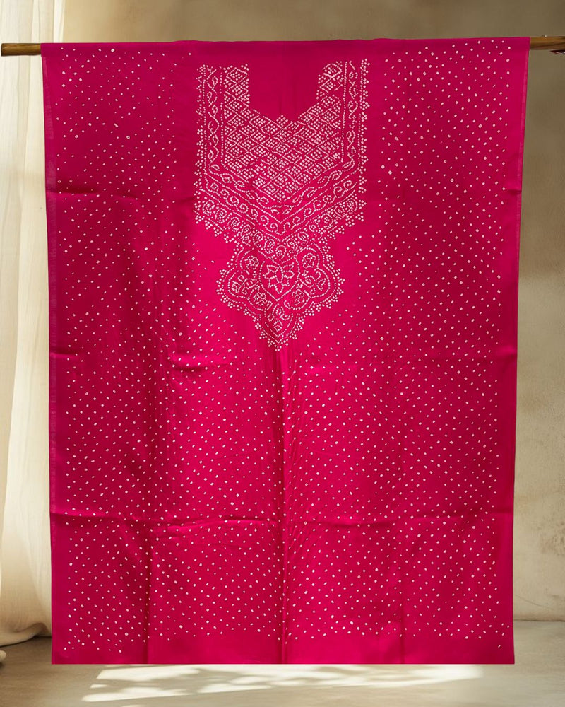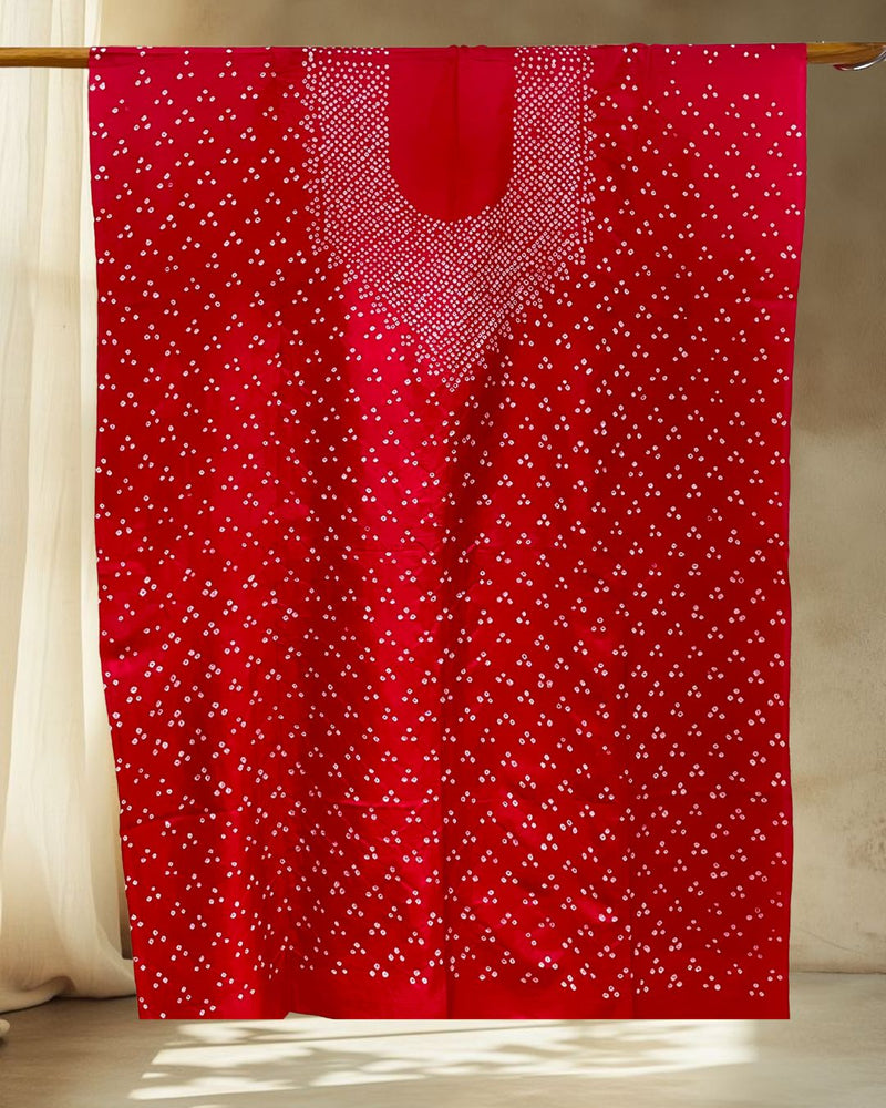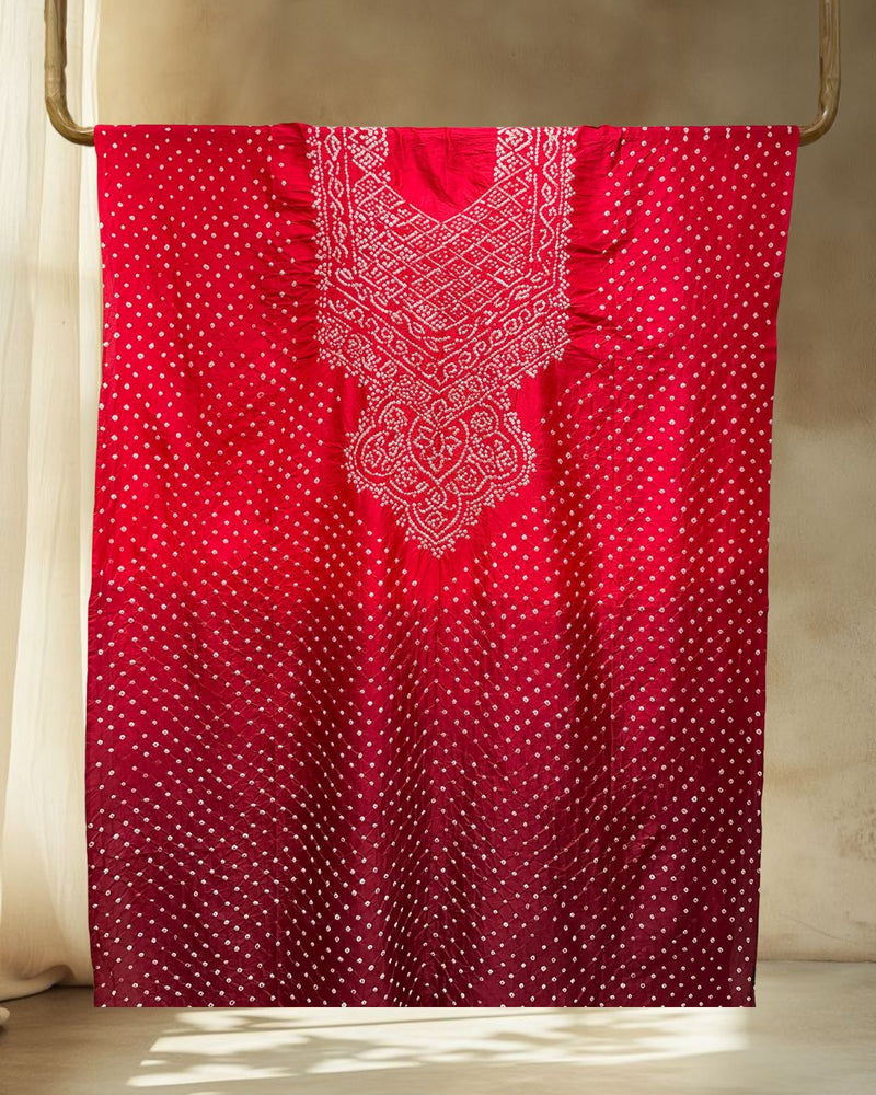 RED - MAROON SHADED YOKE BANDHANI SILK FABRIC