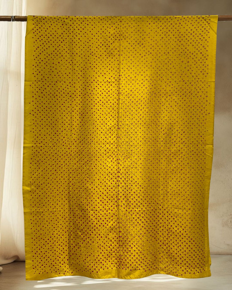 MUSTARD YELLOW YOKE SILK BANDHANI FABRIC