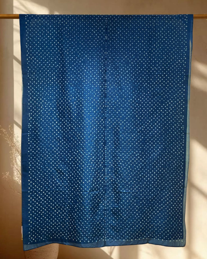 BLUE OVERALL DOT BANDHANI SILK FABRIC