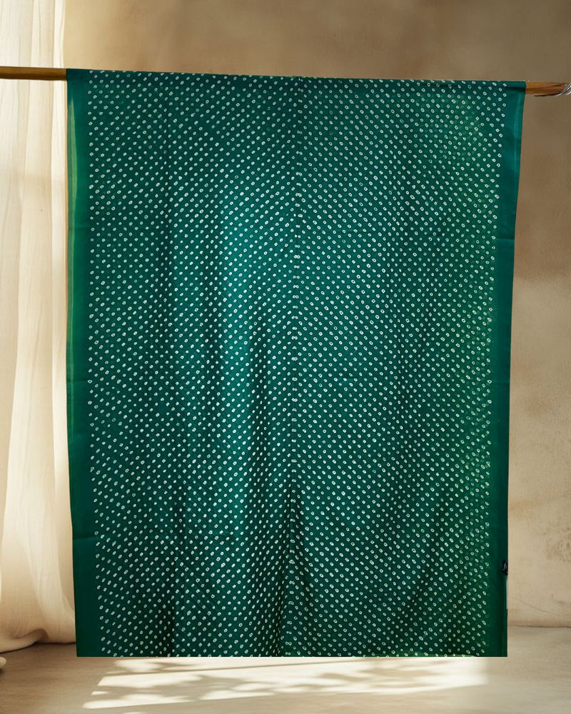 GREEN OVERALL DOT SILK BANDHANI FABRIC