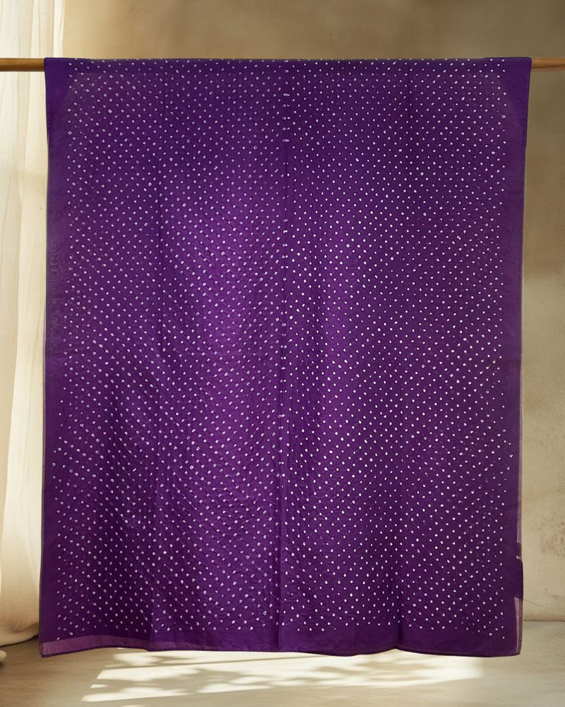 PURPLE OVERALL DOT BANDHANI SILK FABRIC