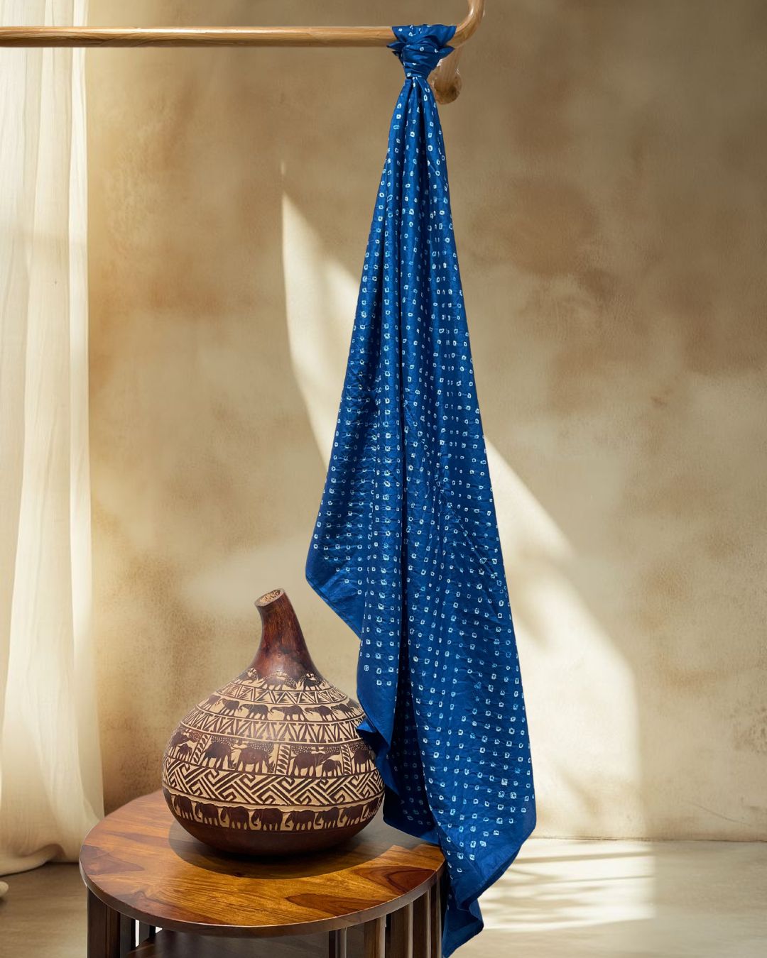 BLUE OVERALL DOT BANDHANI SILK FABRIC
