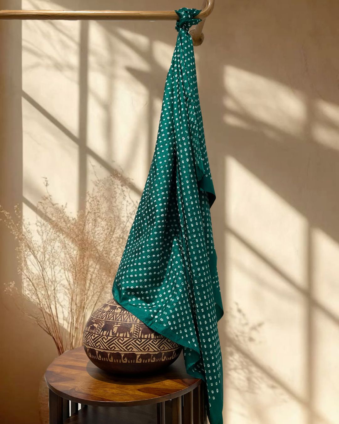 GREEN OVERALL DOT SILK BANDHANI FABRIC