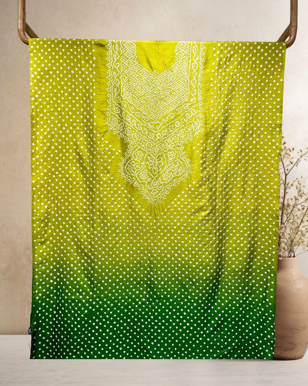 GREEN SHADED YOKE SILK BANDHANI FABRIC