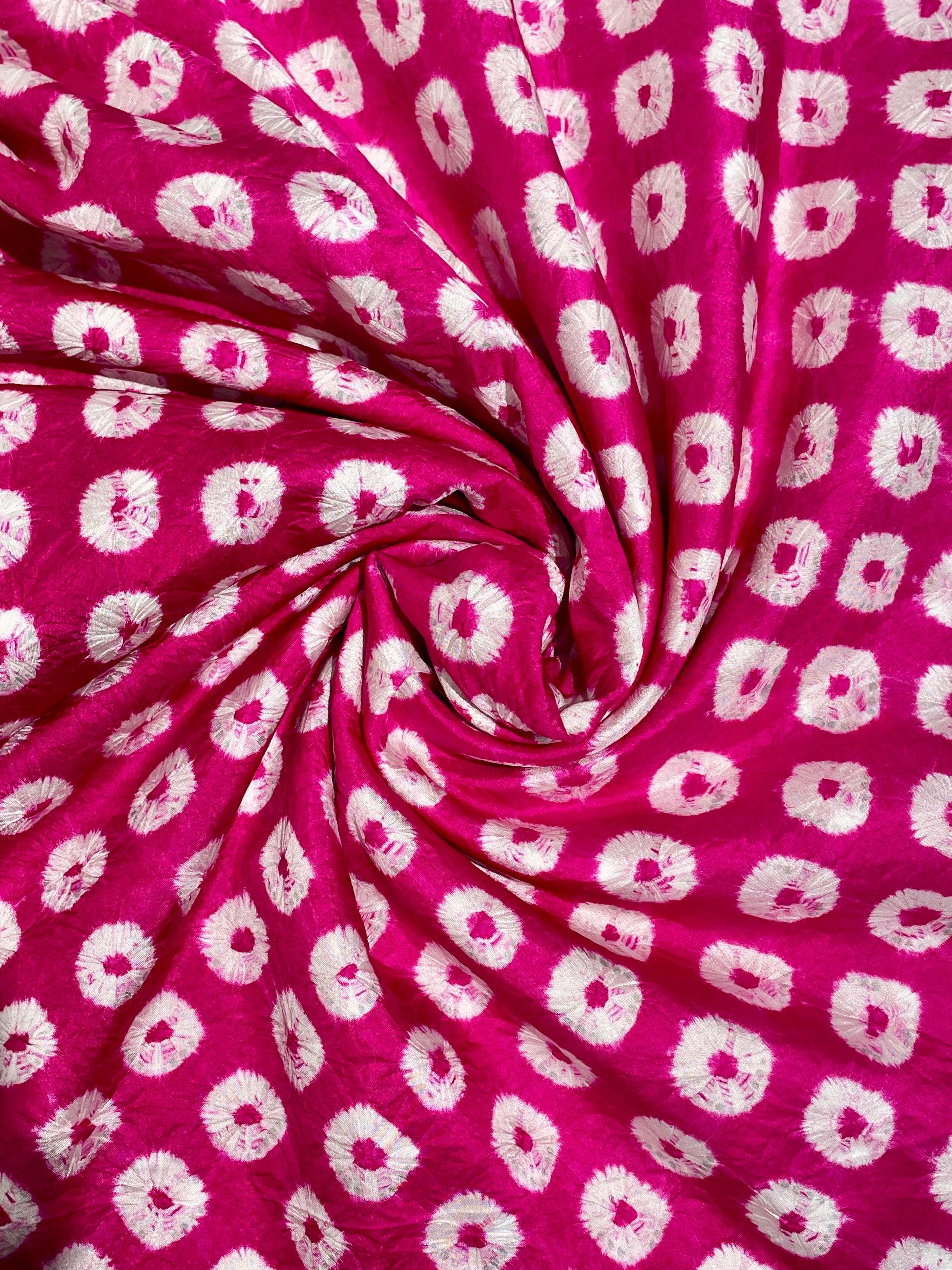 PINK BIG DOTS SILK BANDHANI FABRIC