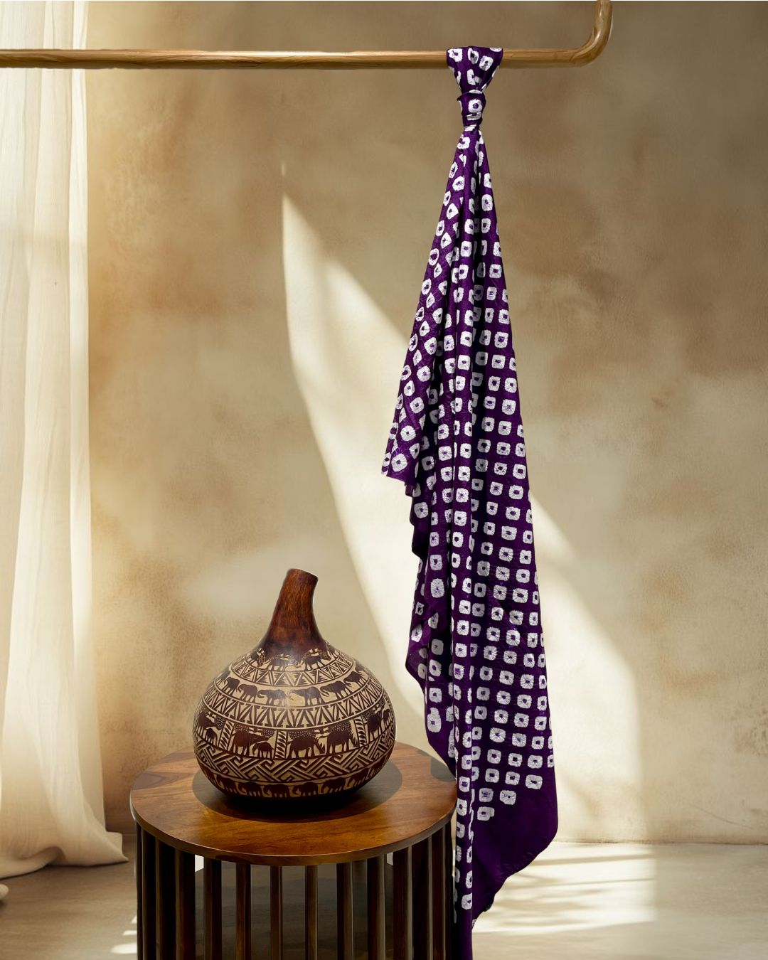 PURPLE BIG DOT SILK BANDHANI FABRIC