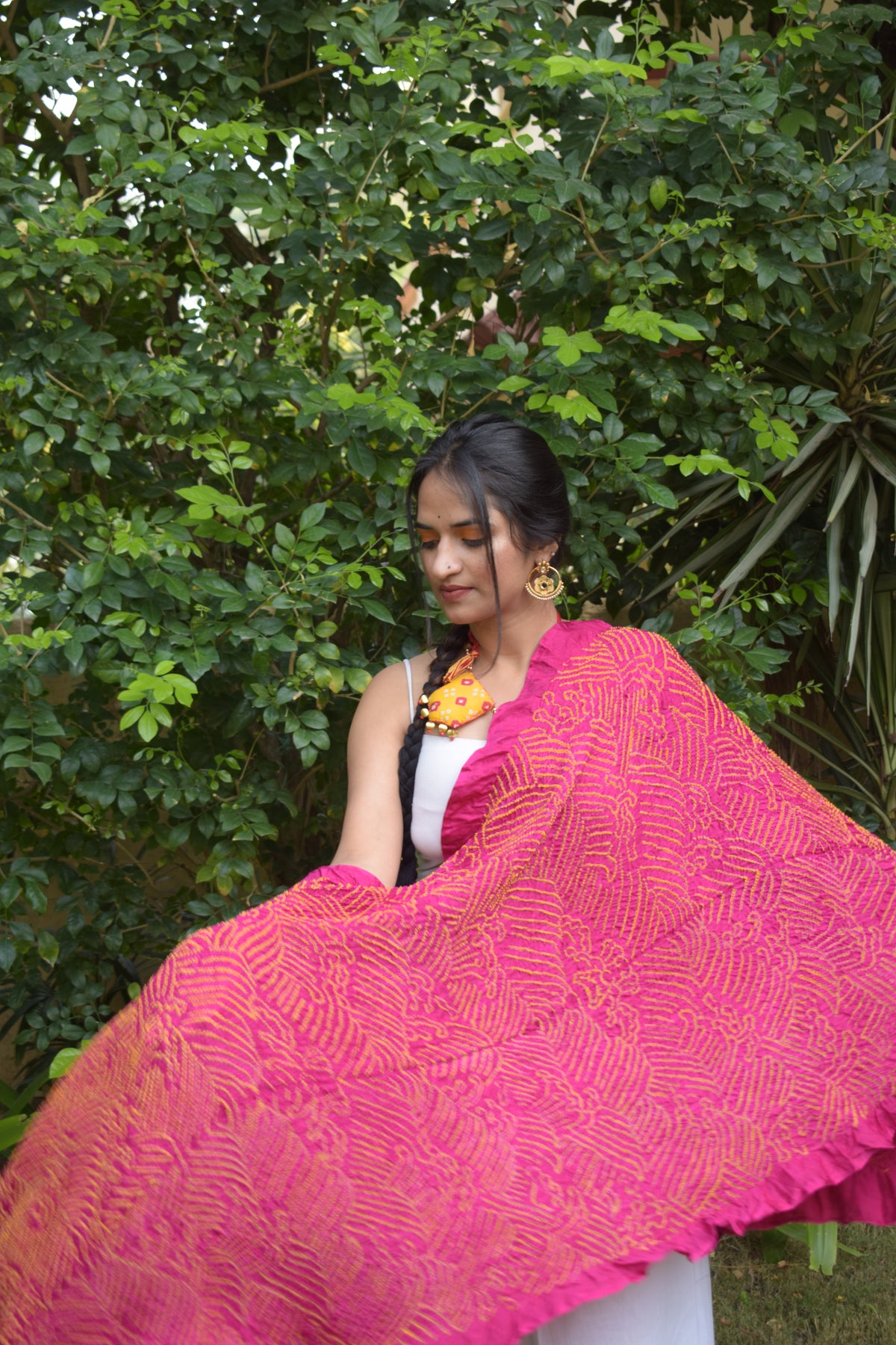 - Please avoid ironing to maintain the texture of your Bandhani.