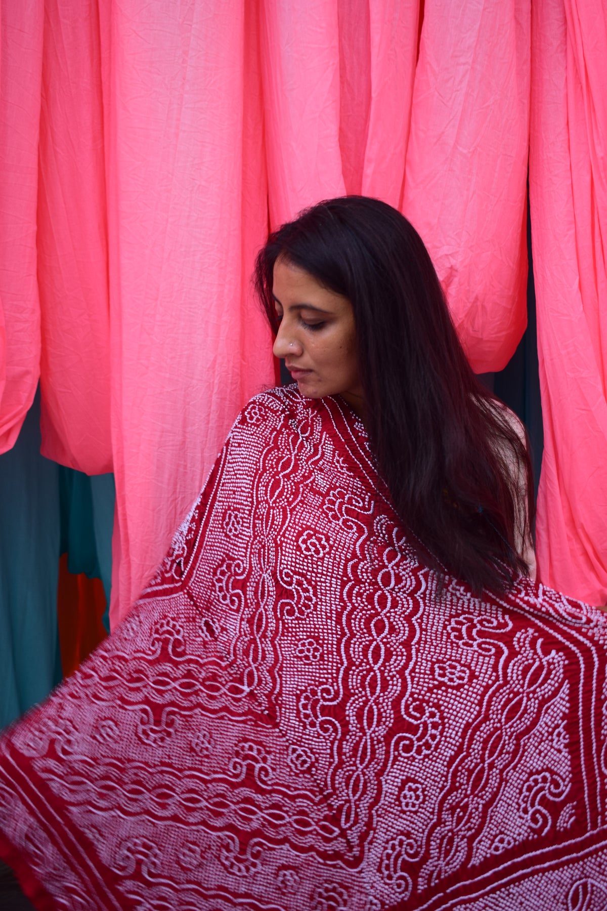 MAROON CLASSIC TRADITIONAL BANDHANI SILK DUPATTA