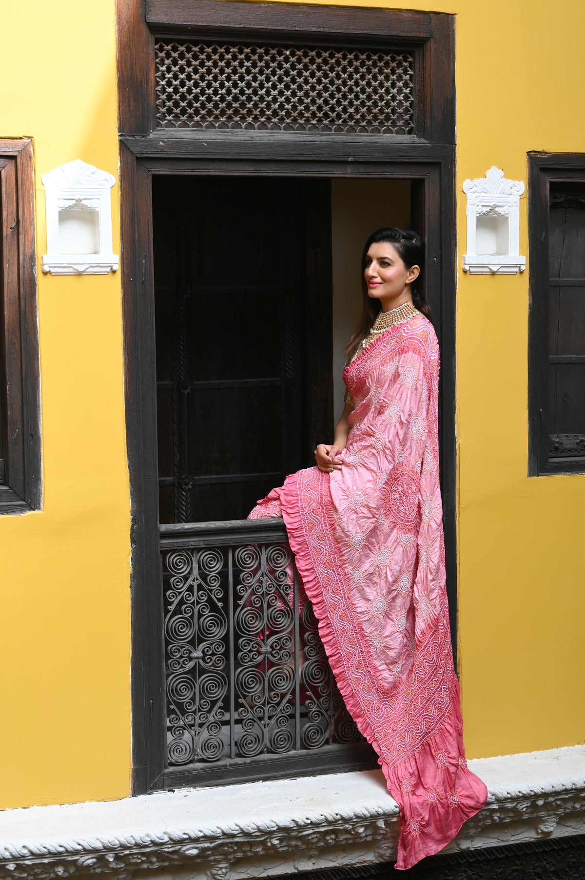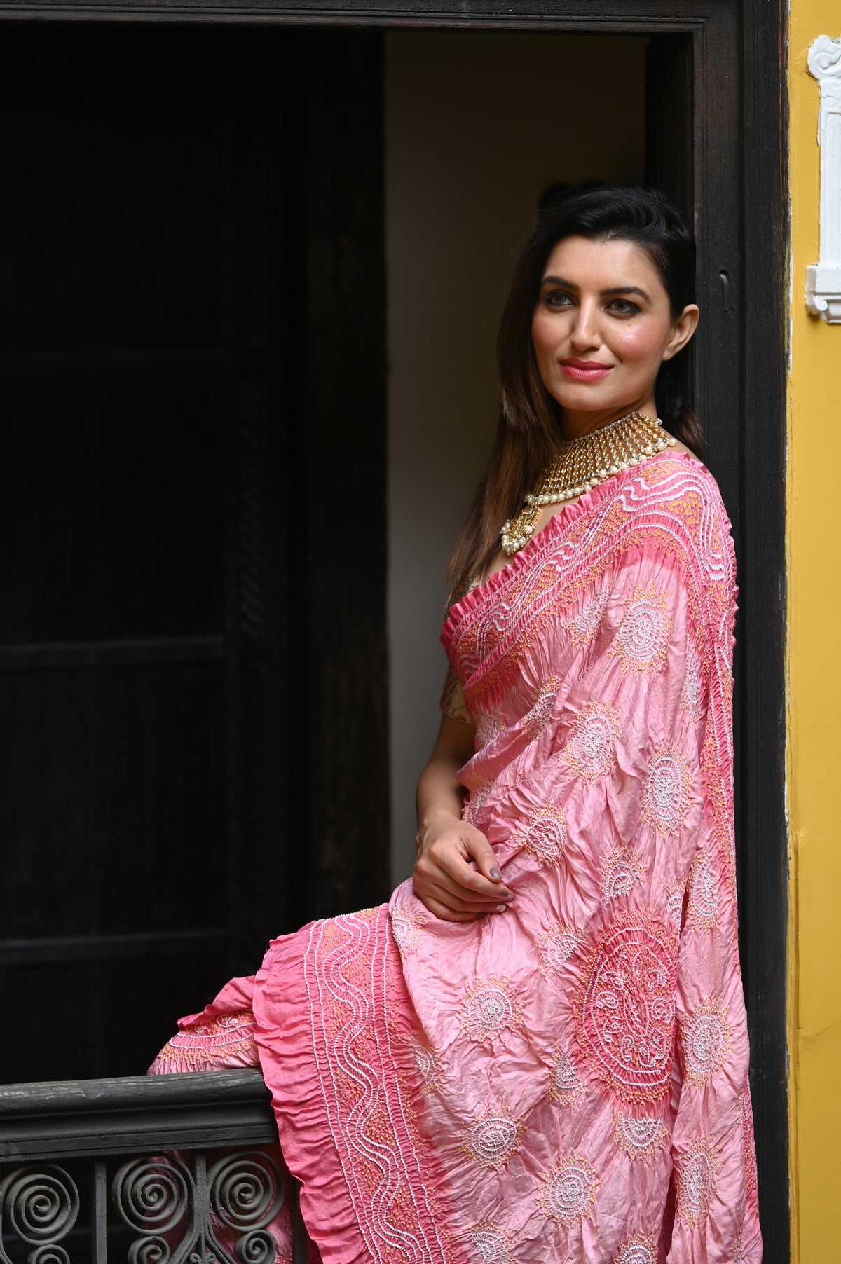 LIGHT PINK CLASSIC TRADITIONAL LADDU BANDHANI SAREE