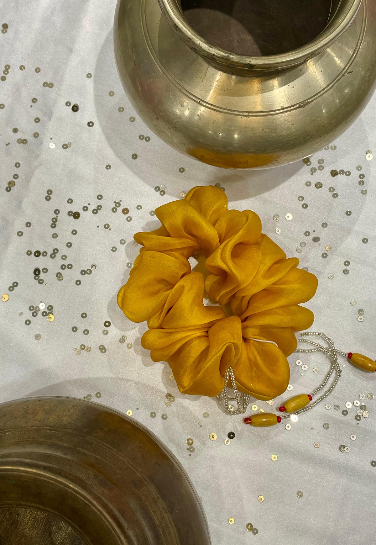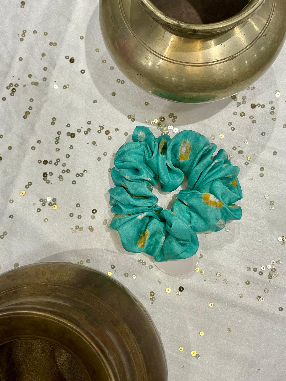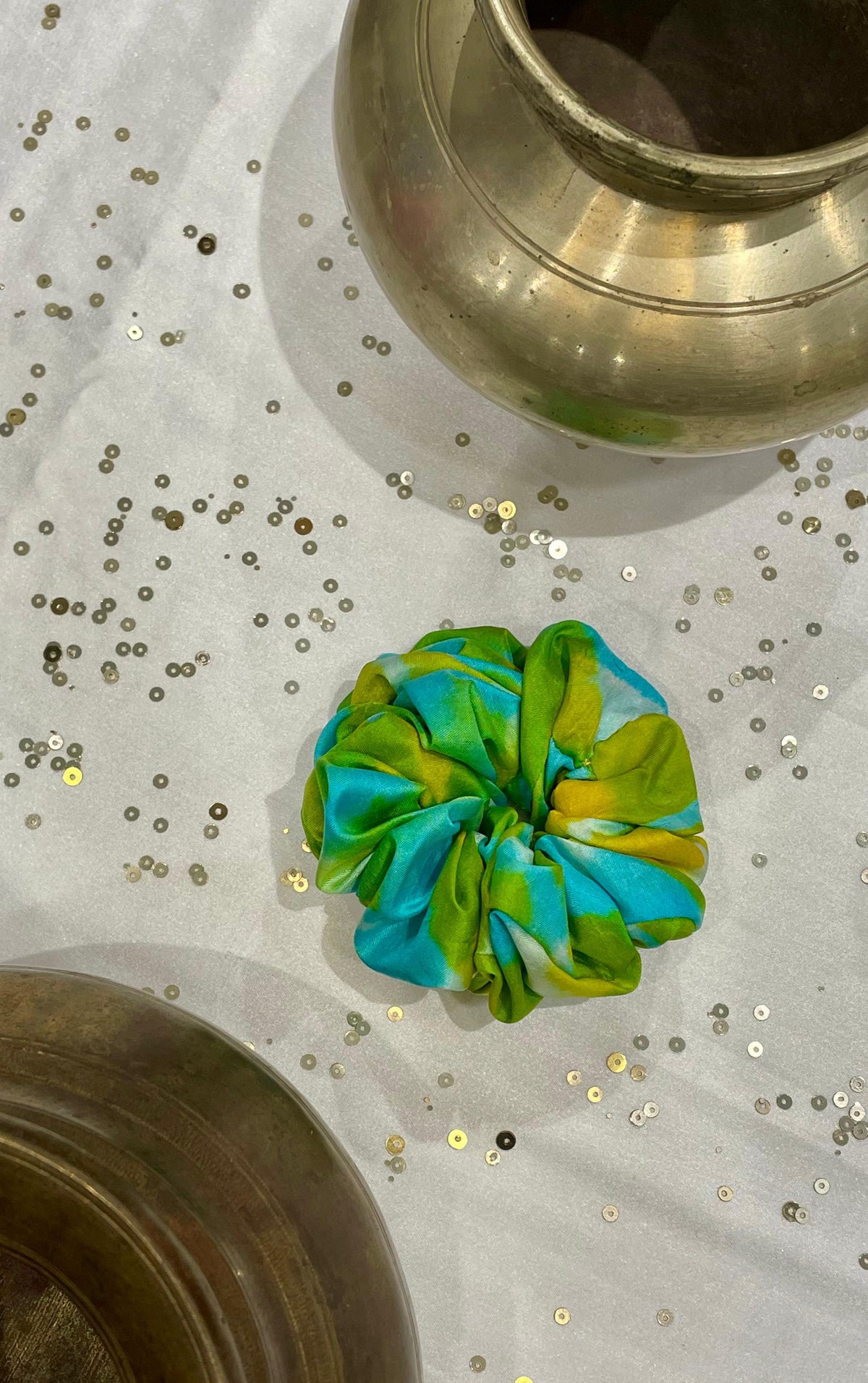 SILK AND ORGANZA SILK SCRUNCHIES - YELLOW, LIGHT BLUE, YELLOW-GREEN