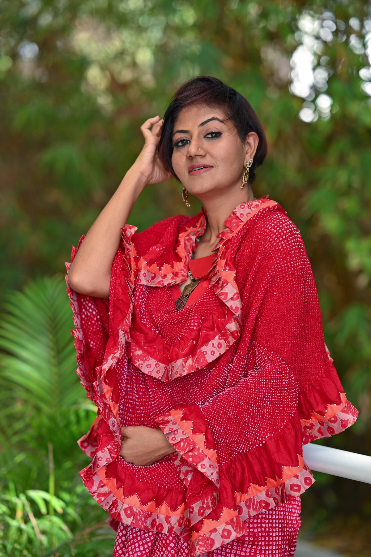 The Silk Ruffle Saree is a masterpiece that blends various art forms into one cohesive creation. Featuring block prints, bandhani, and Leheriya, each saree is uniquely distinct. Stand out in a crowd, with a Neelgar Silk bandhani Ruffle Saree, where no two pieces are alike.