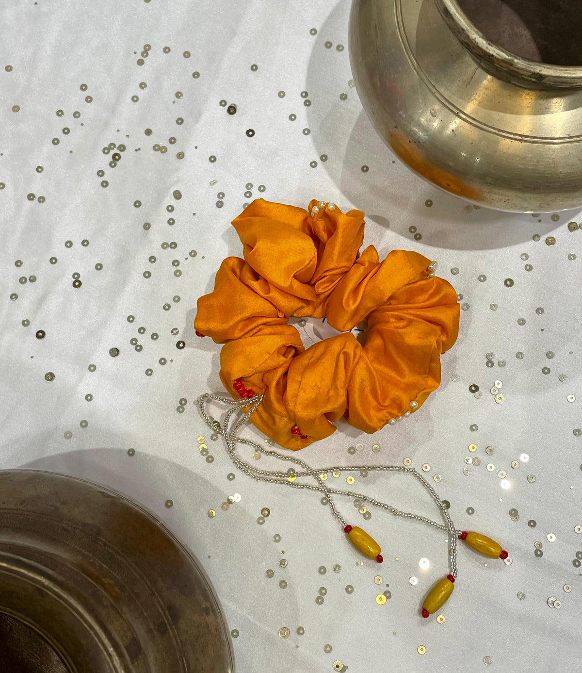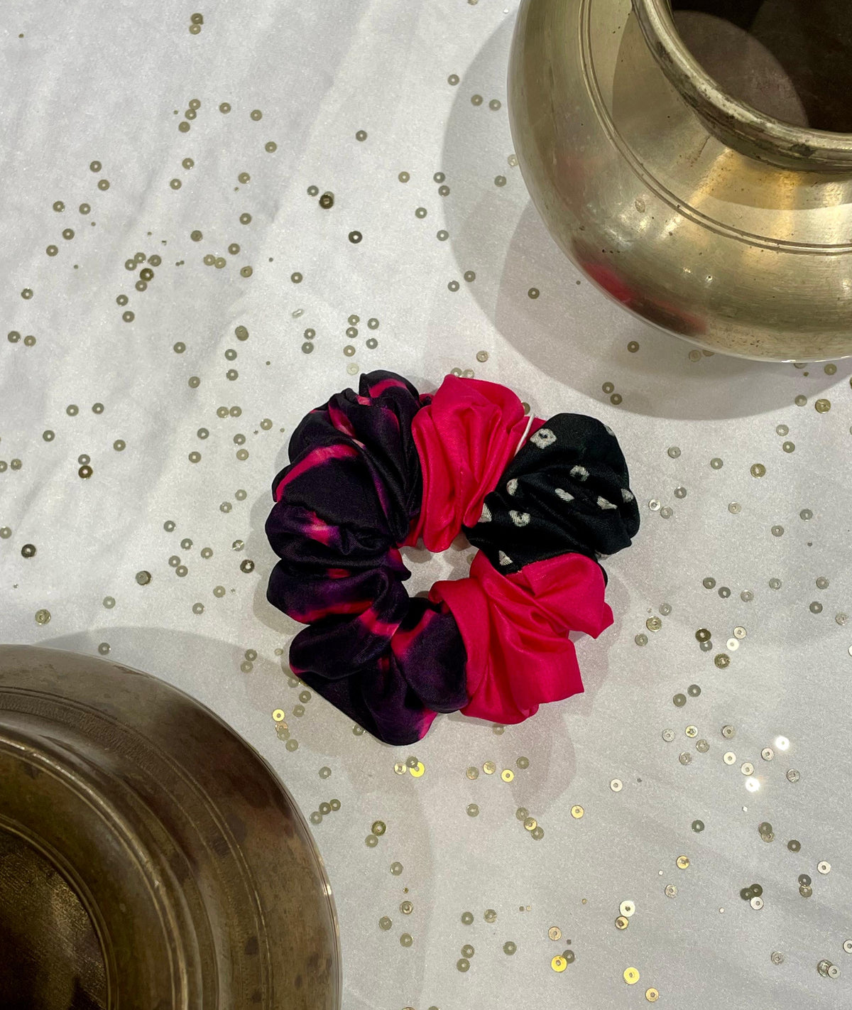 SILK SCRUNCHIES COMBO - YELLOW, RED AND BLACK