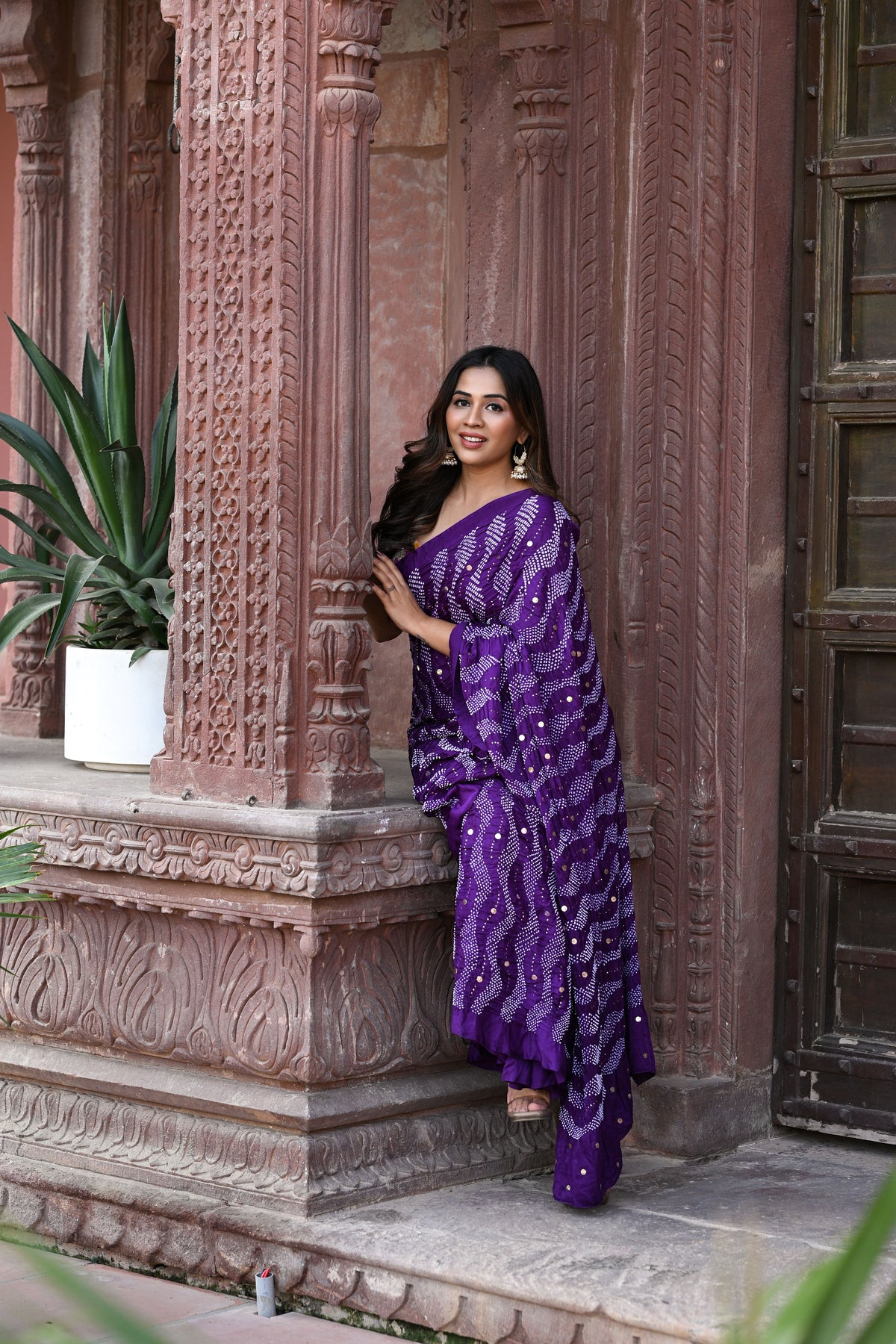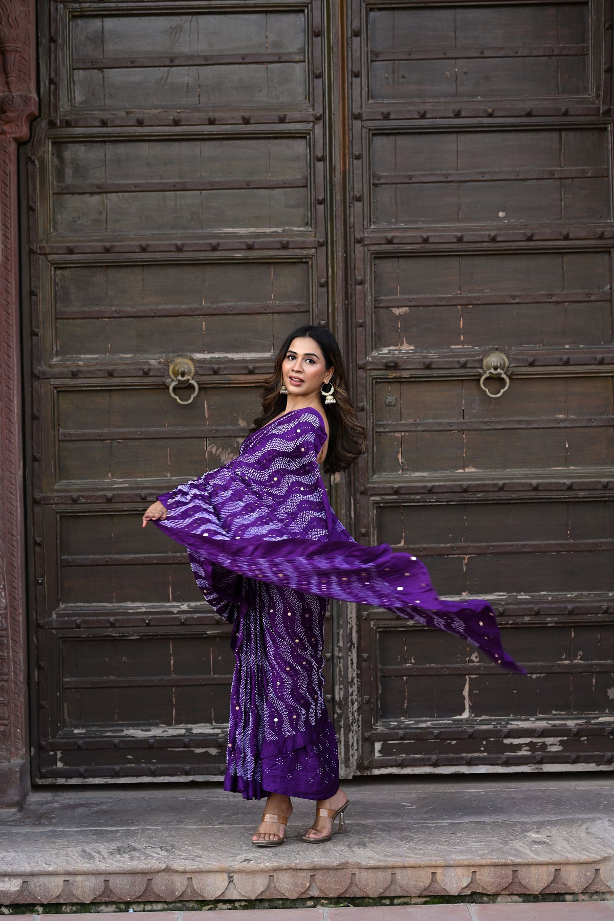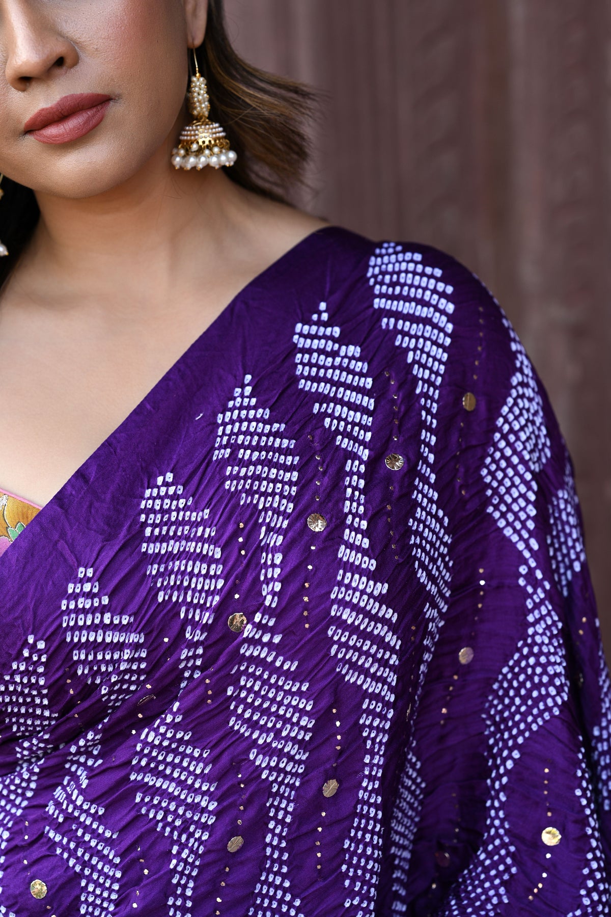 PURPLE WAVES OF THE SEA BANDHANI SILK SAREE WITH MUKAISH WORK