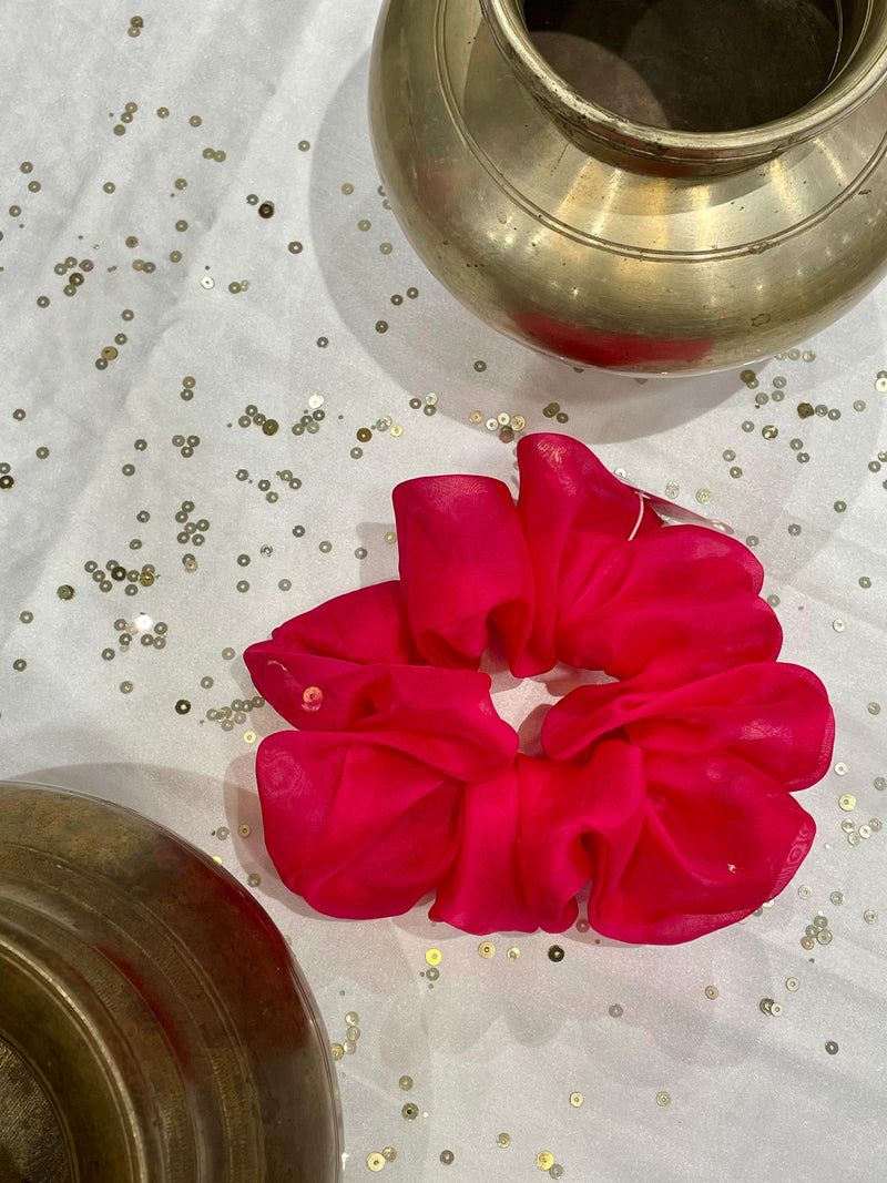 SILK AND ORGANZA SCRUNCHIES COMBO - PINK, LIGHT PINK AND BLACK-PINK