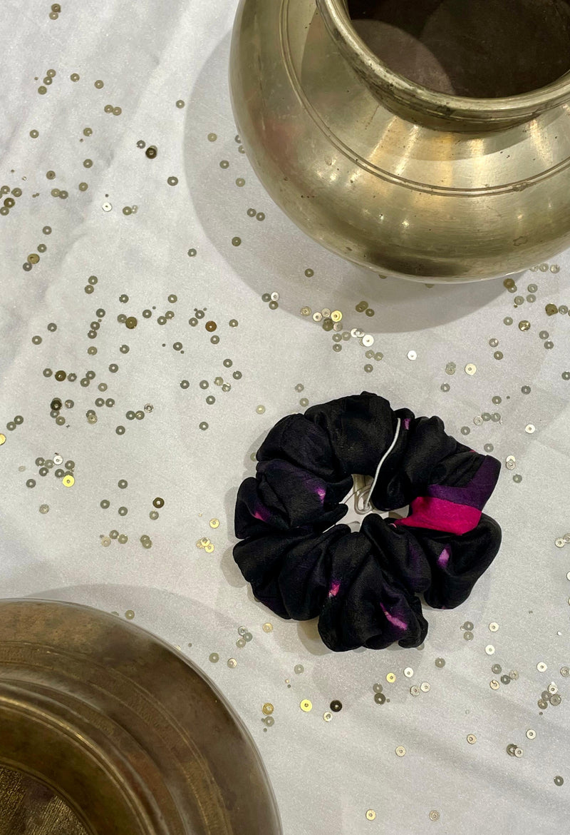 SILK SCRUNCHIES COMBO - PINK, YELLOW-GREEN AND BLACK