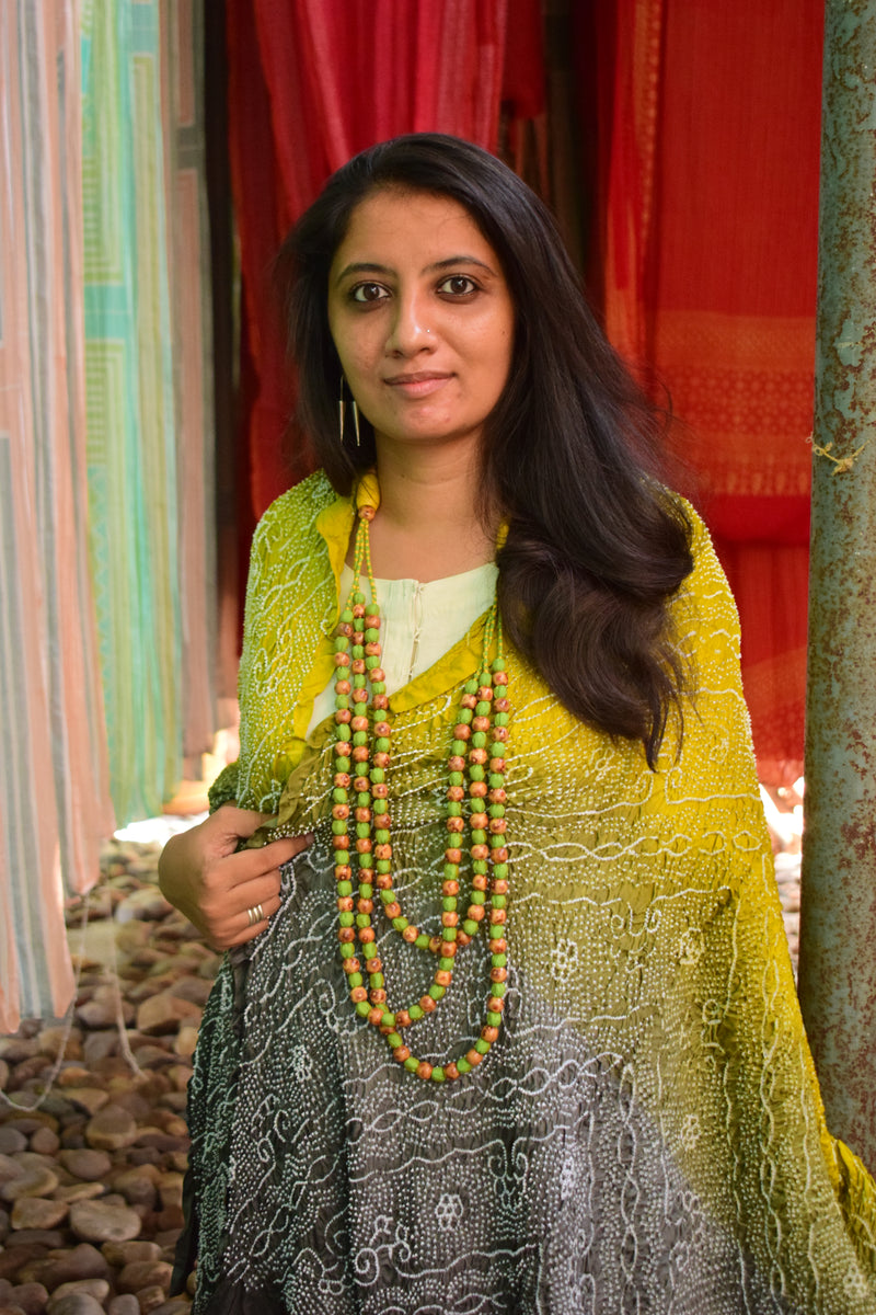 GREEN-GREY JAPANESE BANDHANI SILK DUPATTA