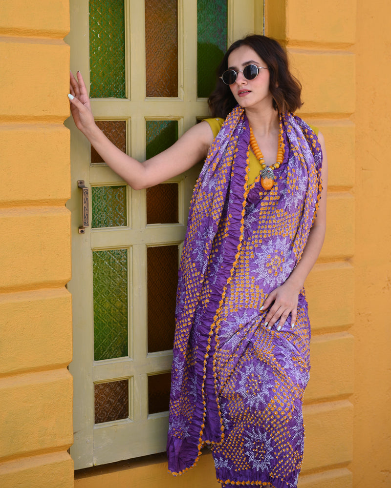PURPLE SUNFLOWER BANDHANI SILK SAREE