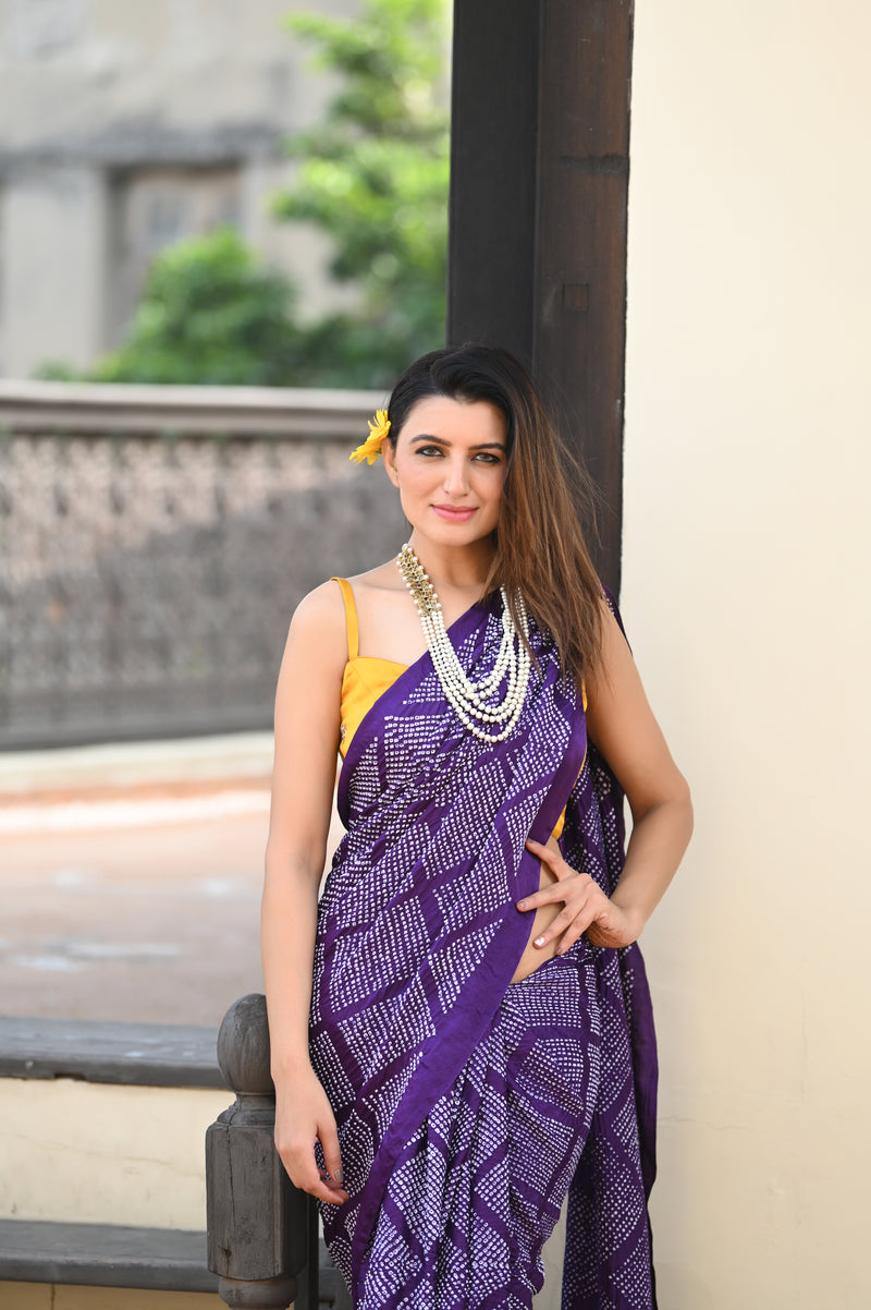PURPLE WAVES OF THE SEA BANDHANI SILK SAREE WITH MUKAISH WORK