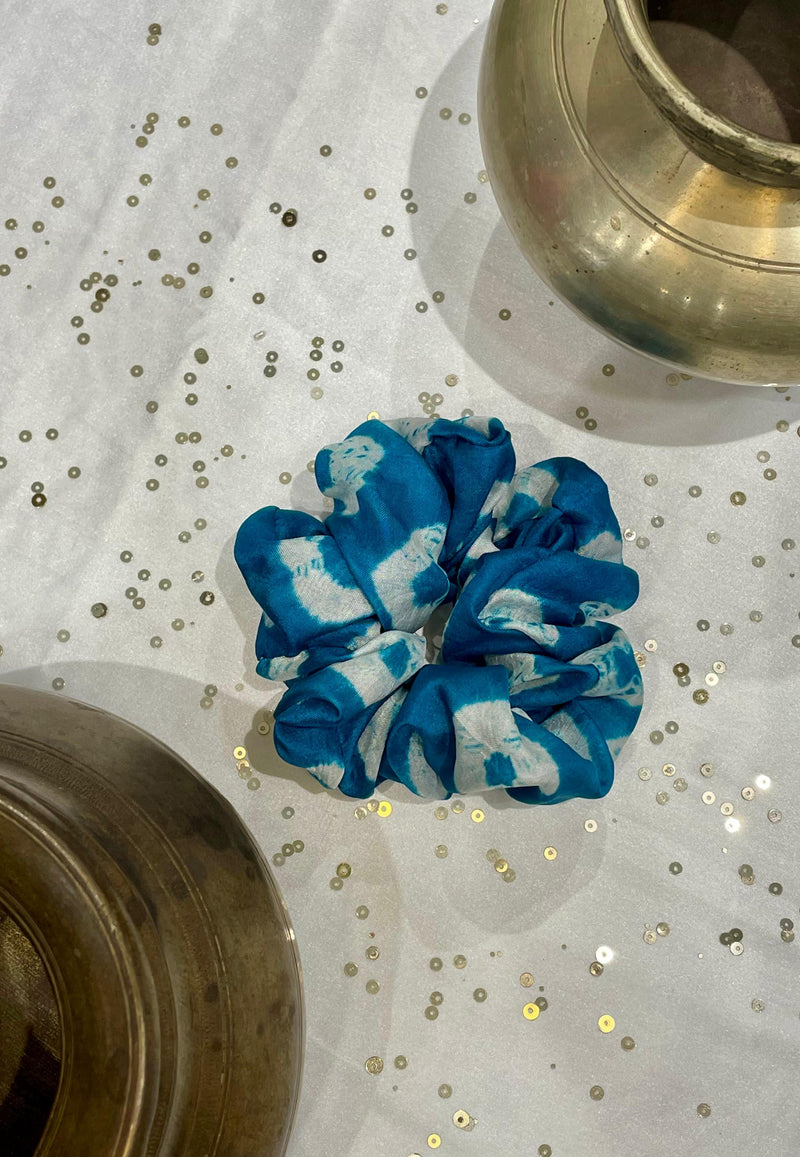SILK SCRUNCHIES COMBO - LIGHT BLUE, MUSTARD YELLOW AND PURPLE