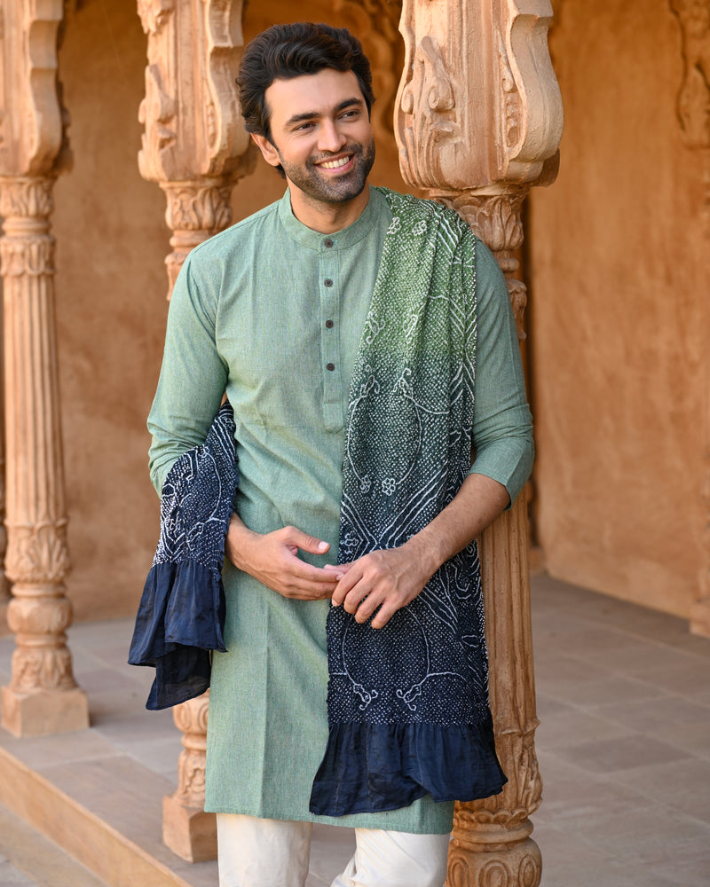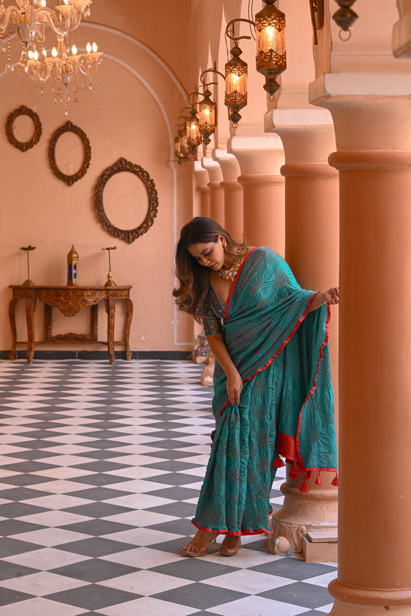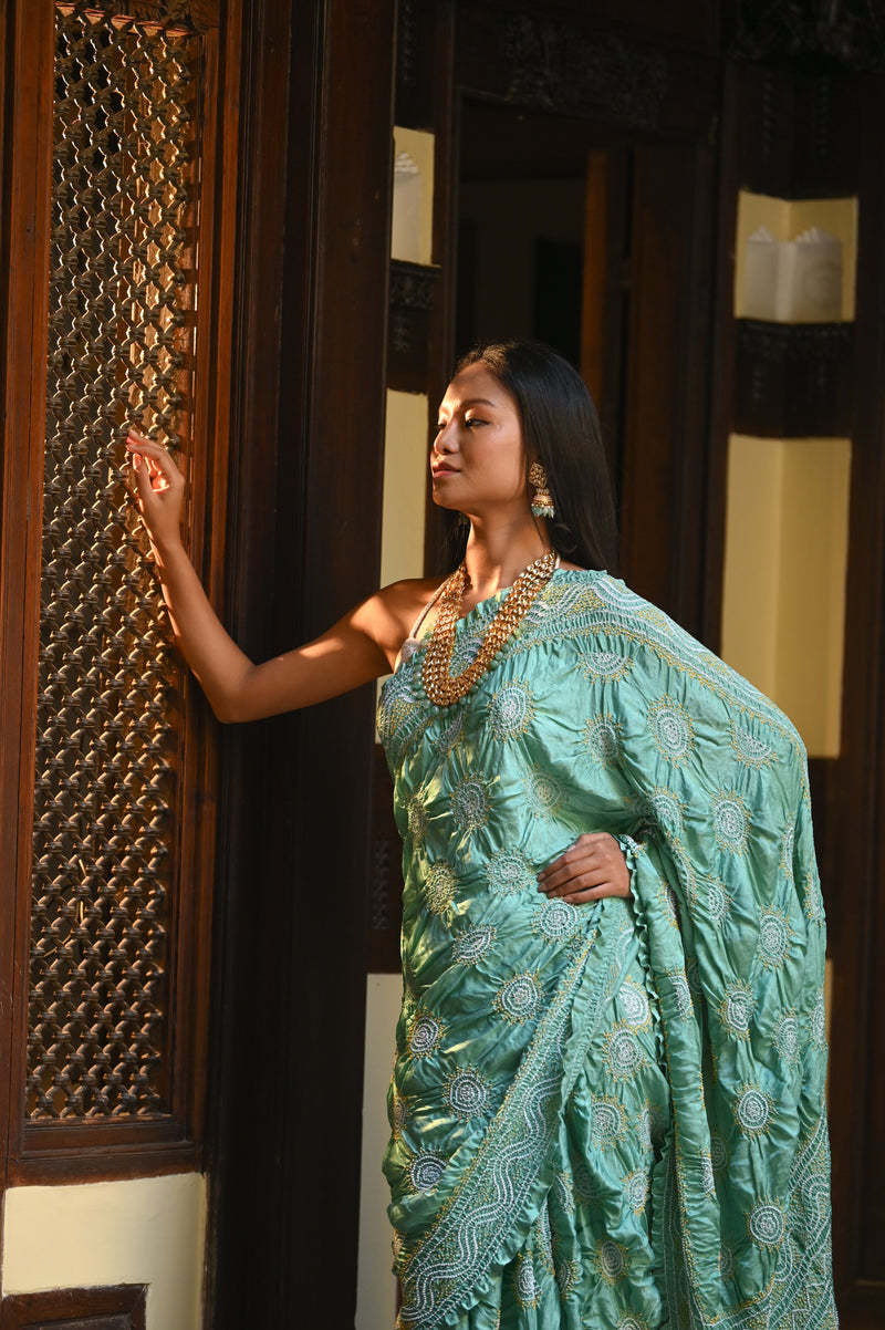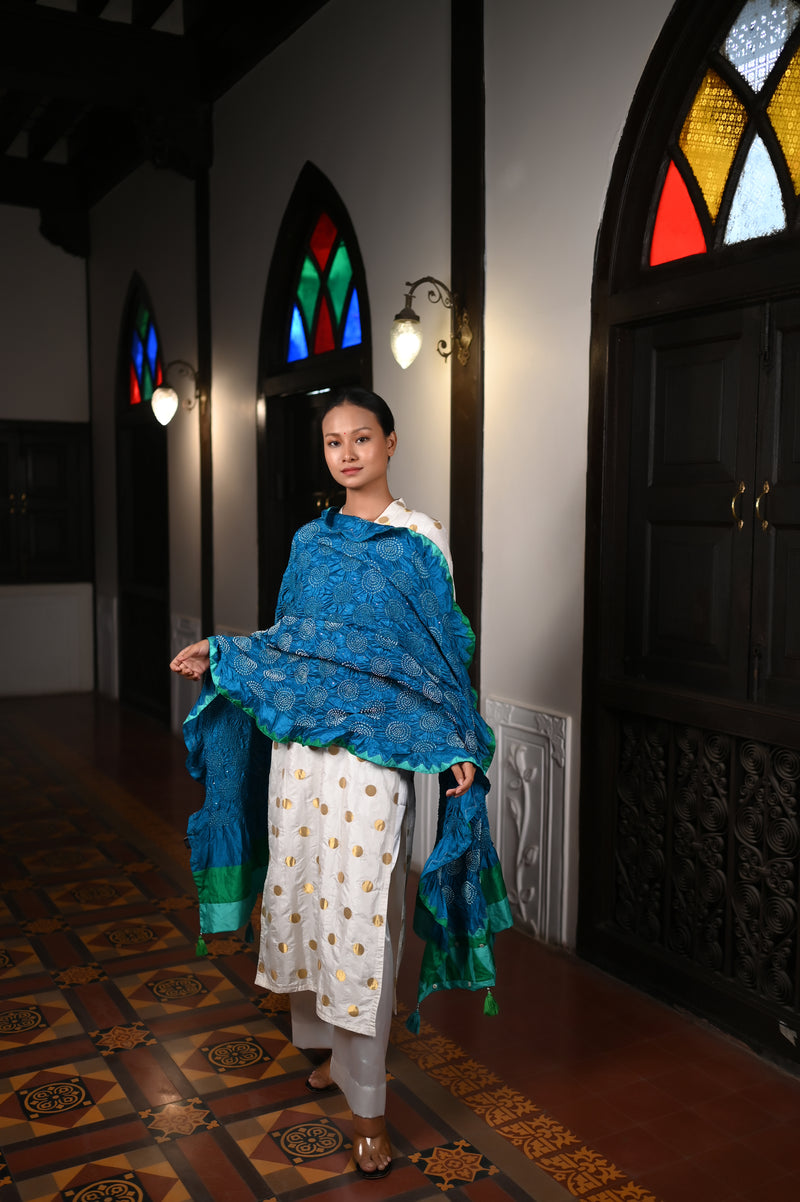 BLUE-GREEN CLASSIC TRADITIONAL BANDHANI SILK DUPATTA