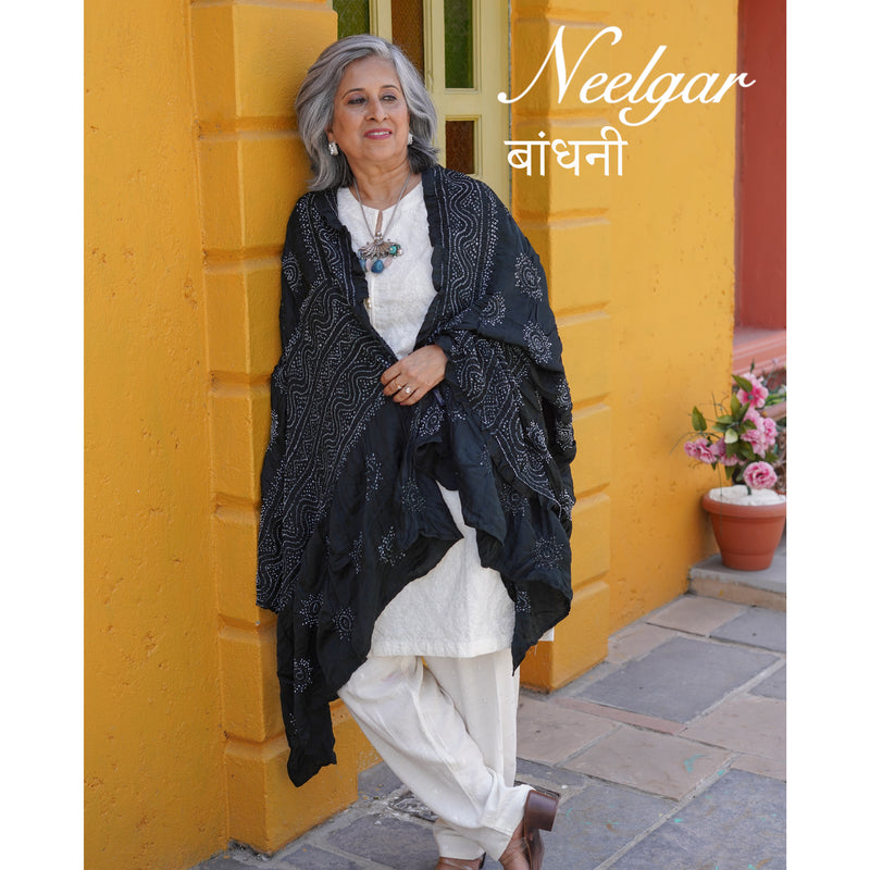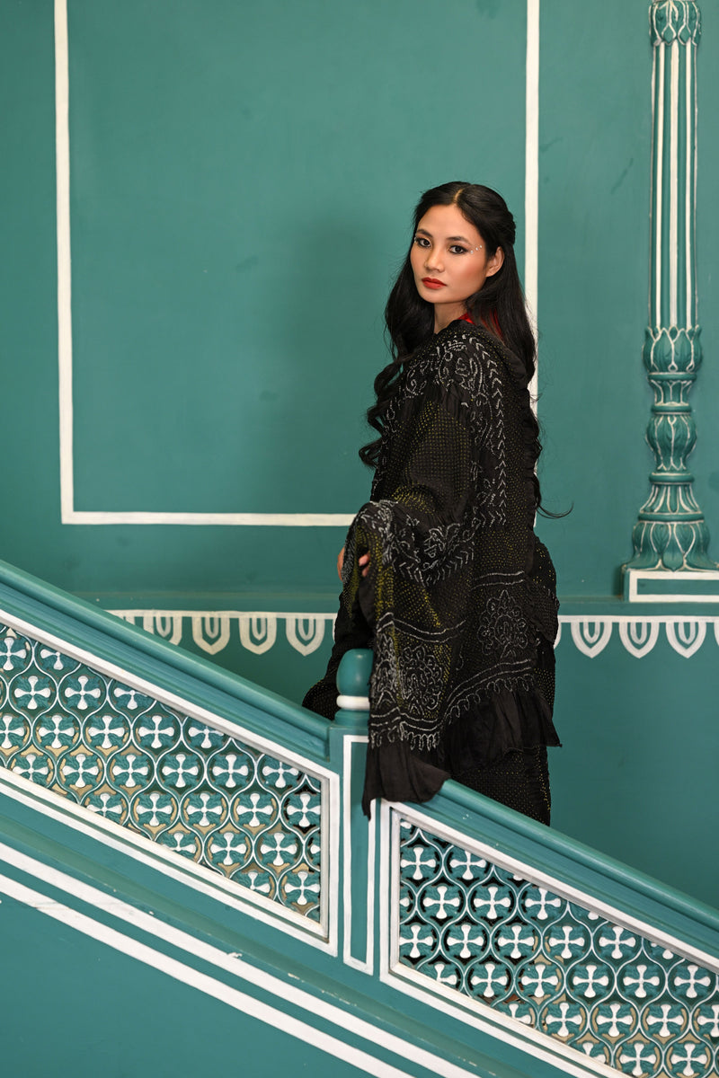 BLACK CLASSIC TRADITIONAL LADDU BANDHANI SILK DUPATTA