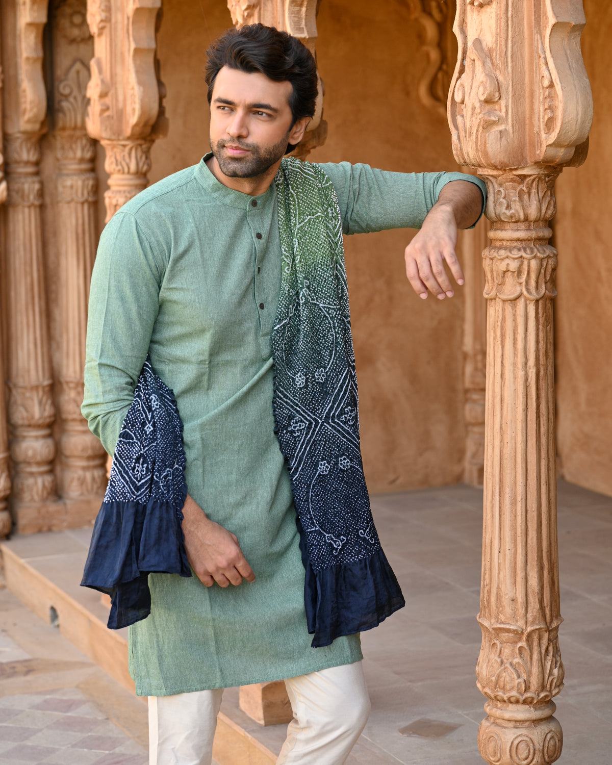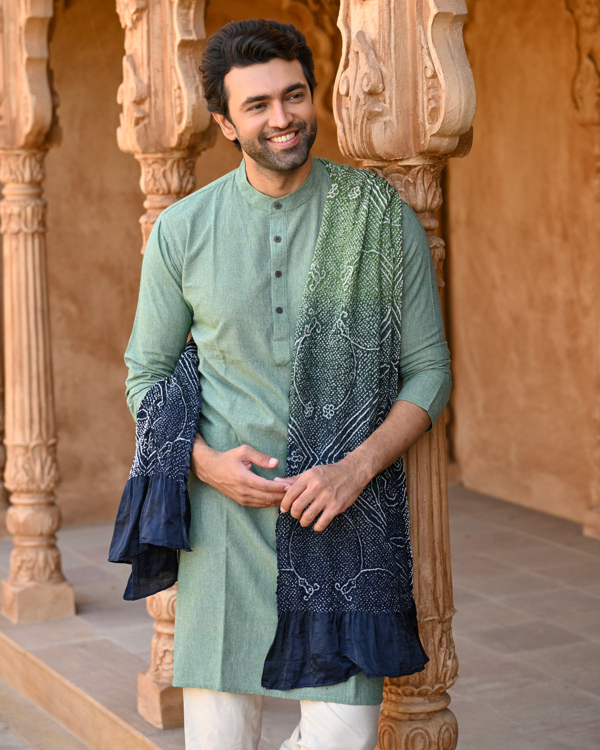 GREEN-NAVY BLUE FLOWER BANDHAANI SILK DUPATTA