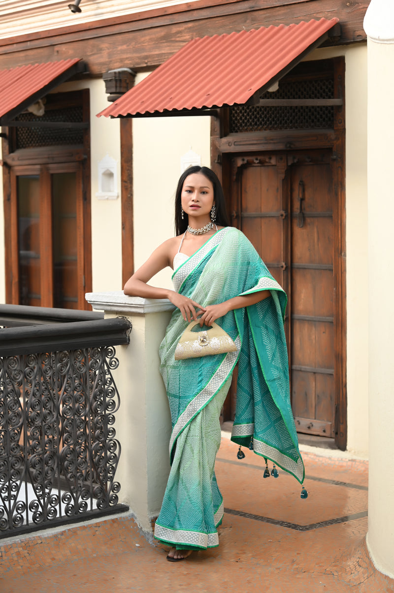 BLUE DIAMOND BANDHANI SILK SAREE