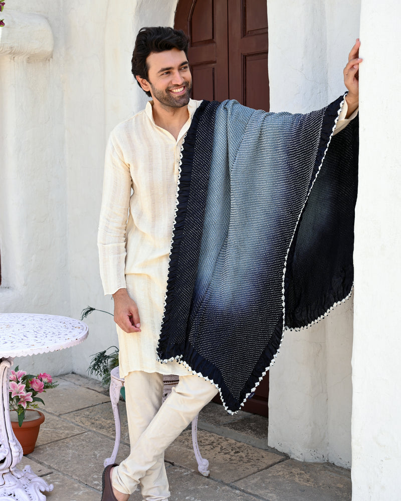 BLACK-GREY ETERNAL DOTS BANDHANI SILK DUPATTA