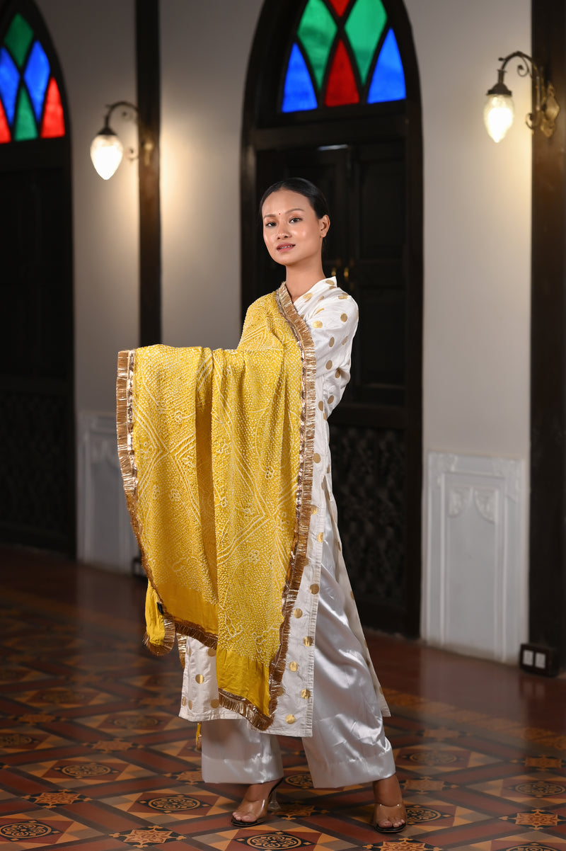 MUSTARD YELLOW CLASSIC TRADITIONAL LADDU BANDHANI SILK DUPATTA