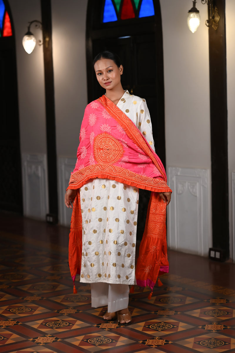RED ETERNAL DOTS BANDHANI SILK DUPATTA
