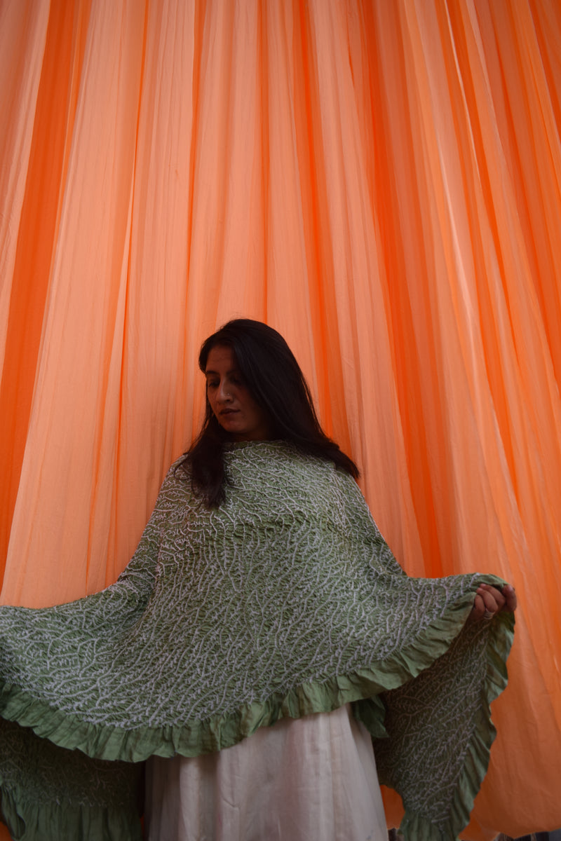 LIGHT GREEN FLOWER BANDHANI SILK DUPATTA