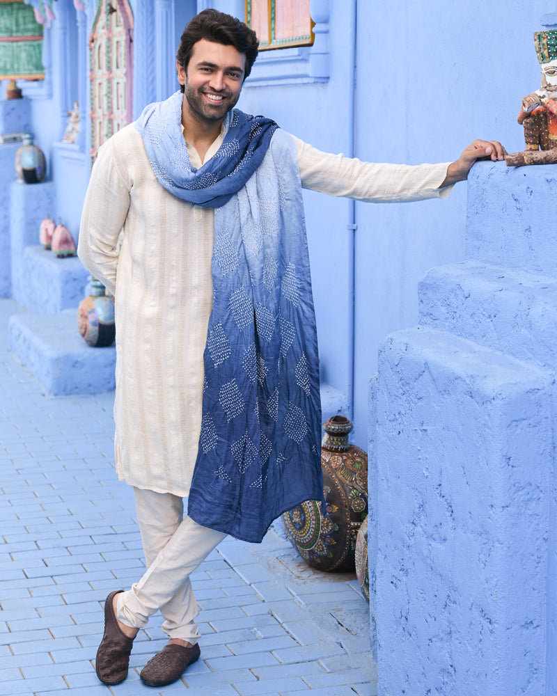 INDIGO BLUE CIRCLE OF THE LIFE BANDHANI SILK DUPATTA WITH BORDER AND TASSELS