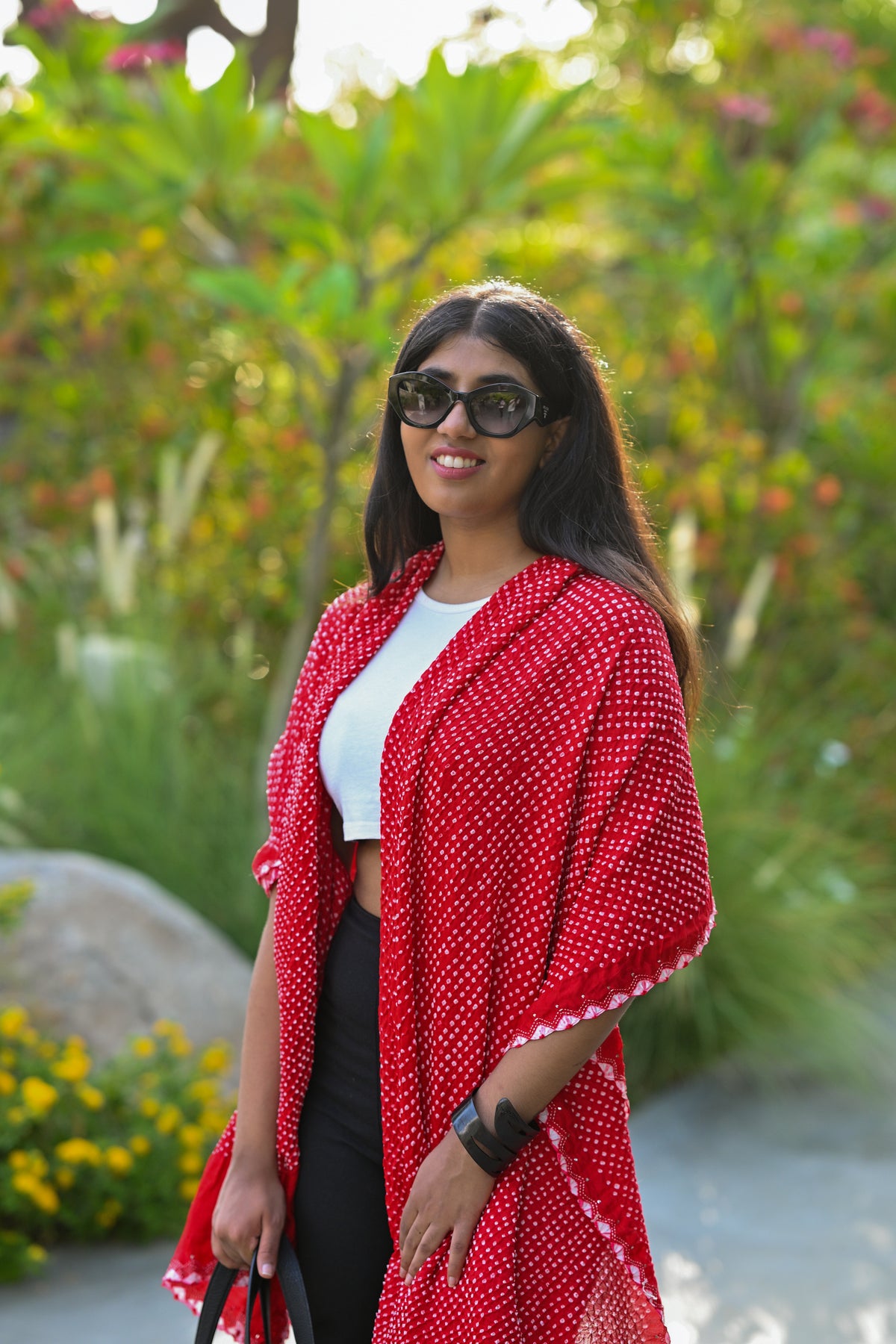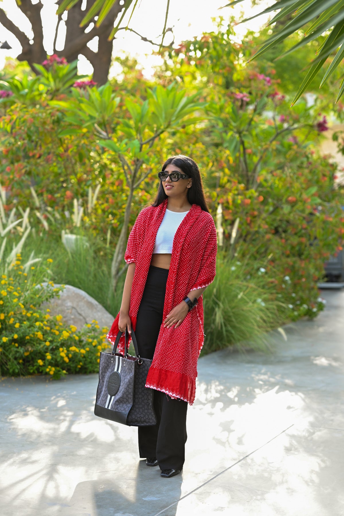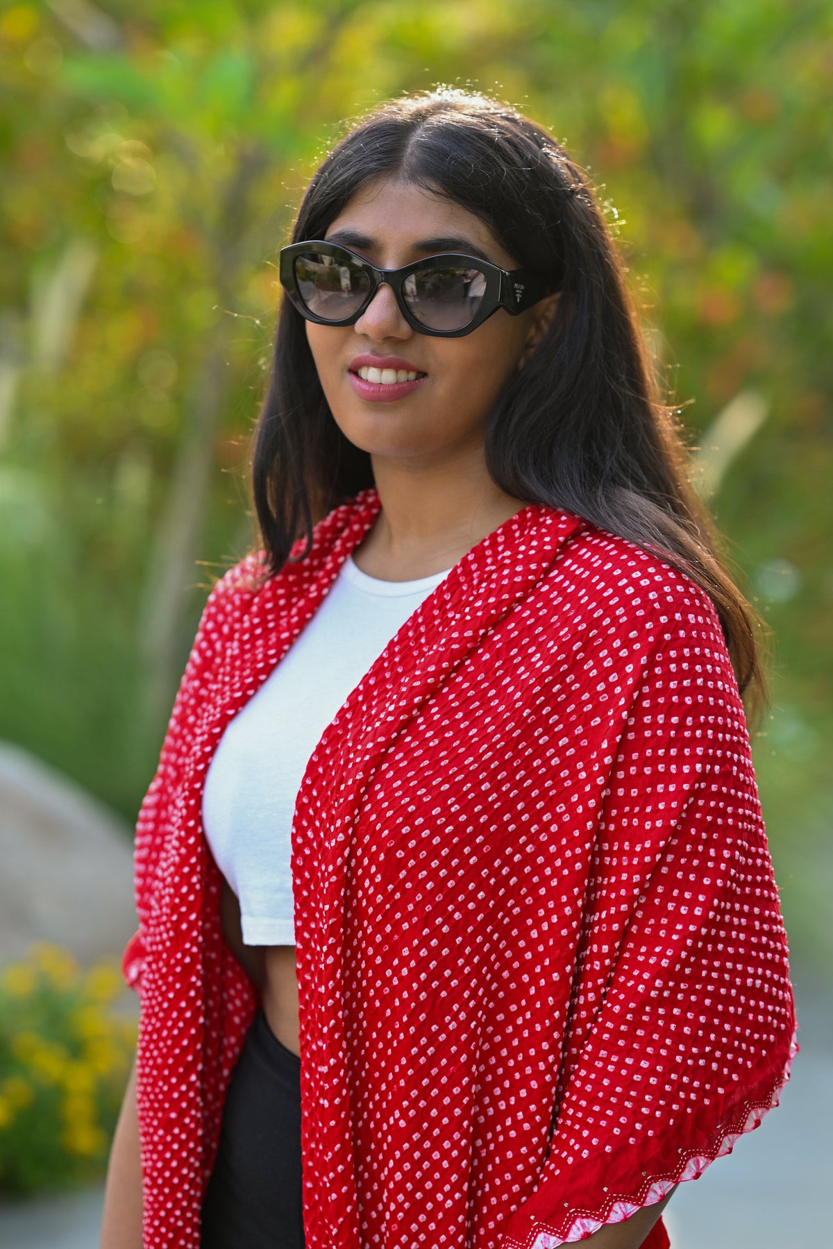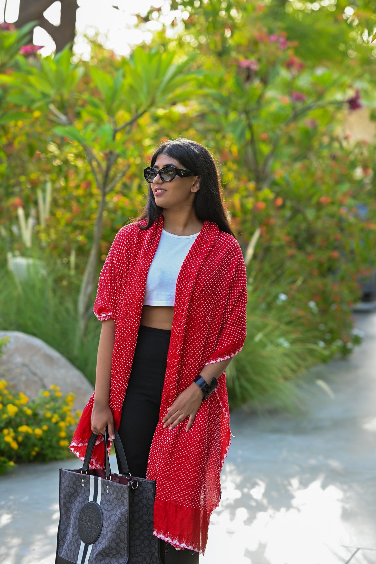 RED ETERNAL DOTS BANDHANI SILK DUPATTA