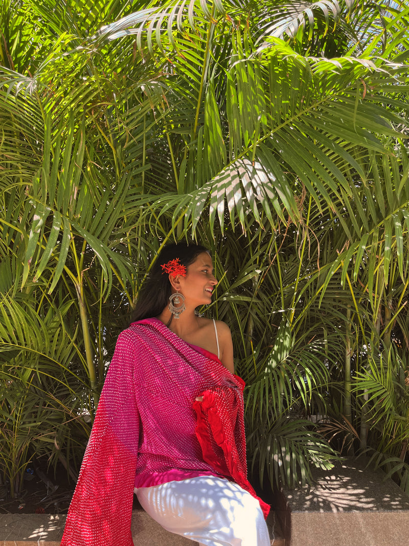 RED-PINK ETERNAL DOTS BANDHANI SILK DUPATTA