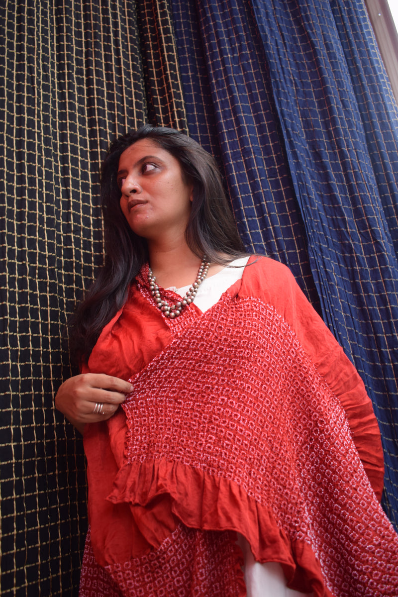 RED ETERNAL DOTS BANDHANI SILK DUPATTA