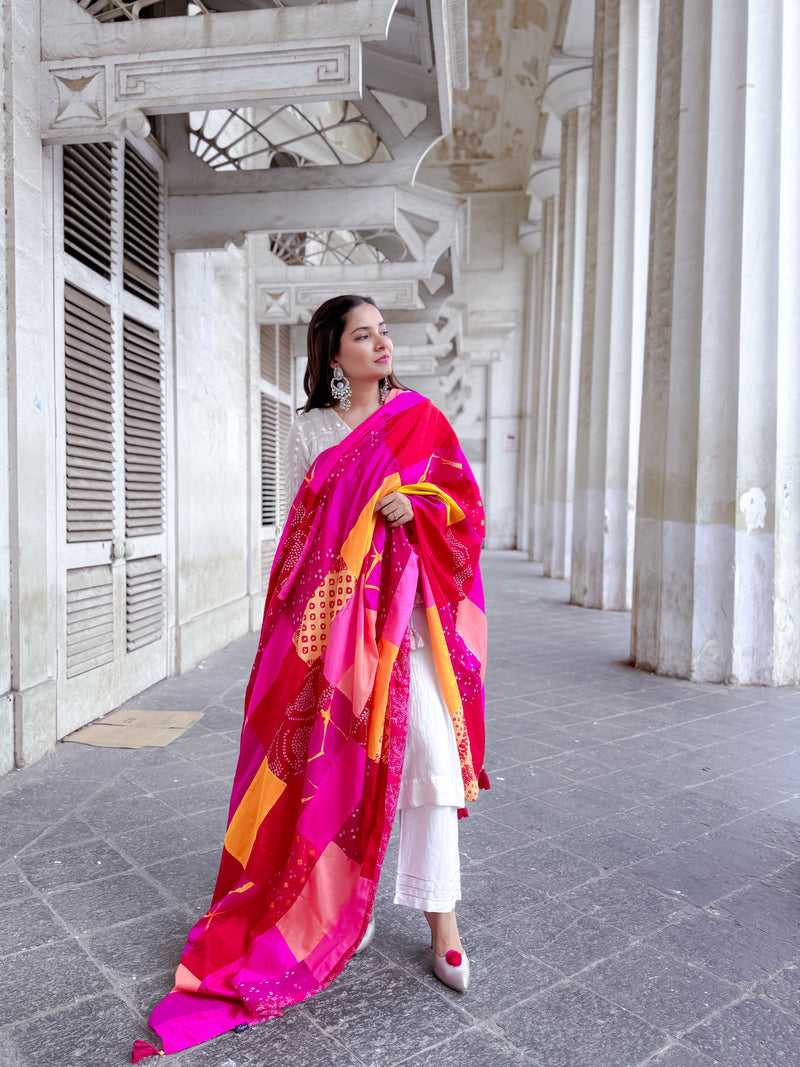 PINK BROKEN LINES BANDHANI SILK DUPATTA