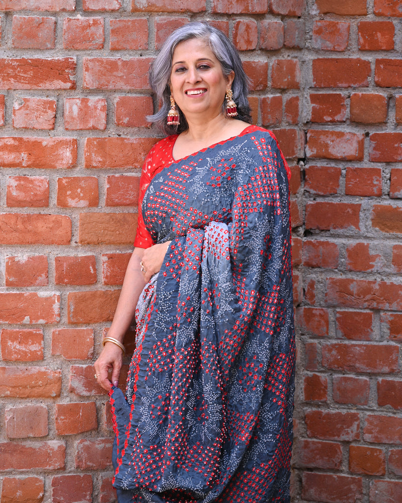 GREY ETERNAL DOTS BANDHANI SILK SAREE