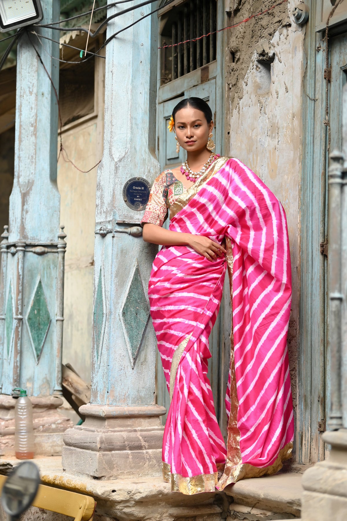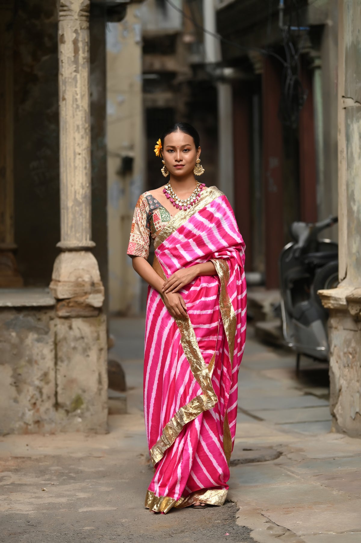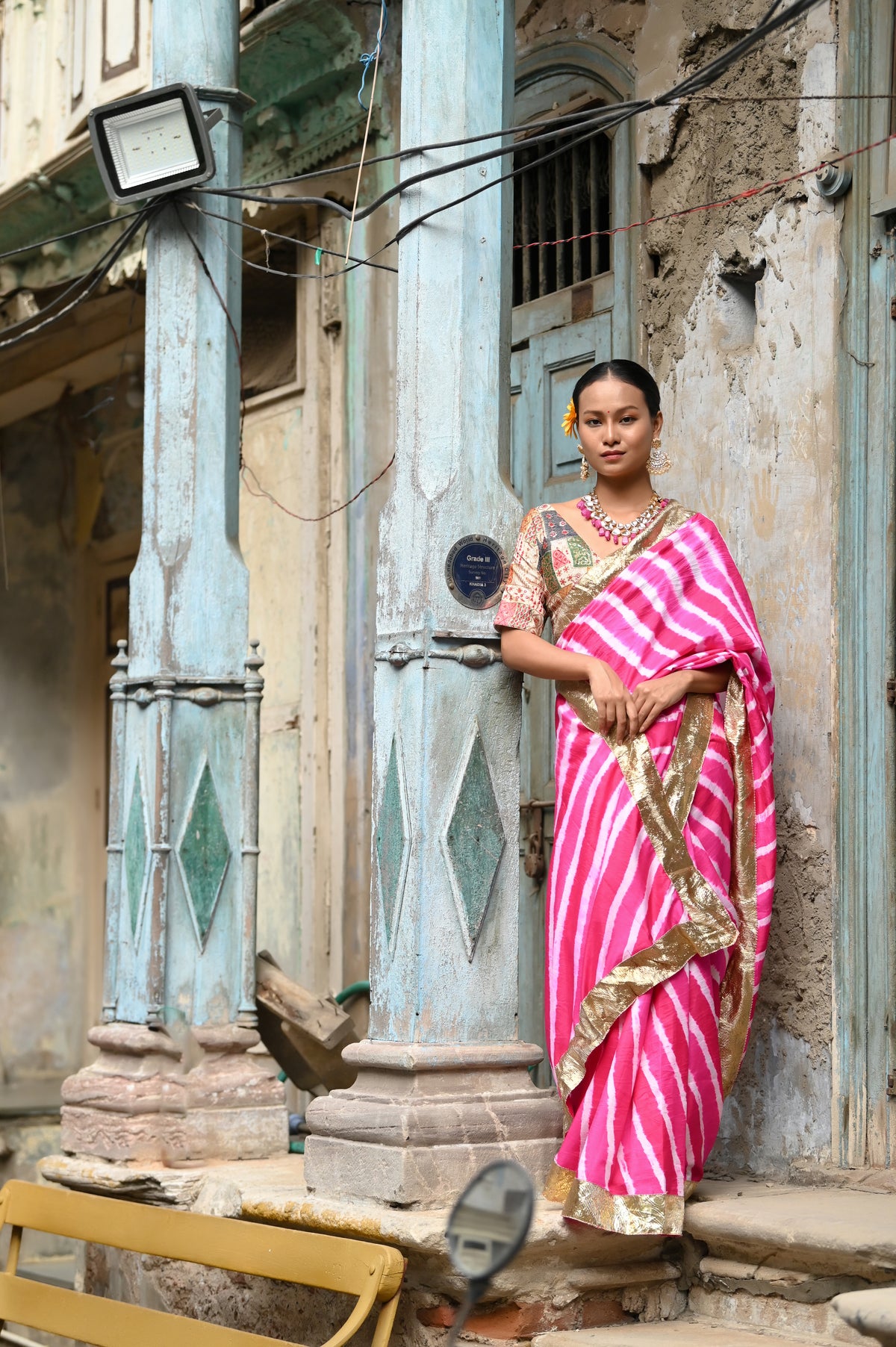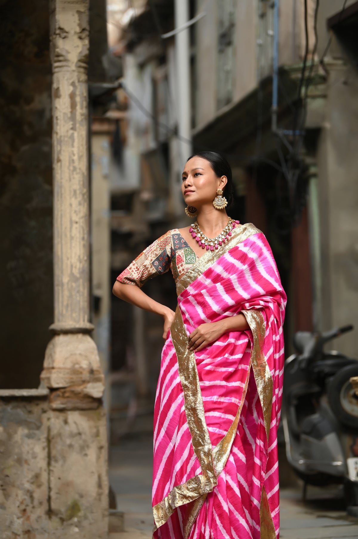 PINK LEHERIYA SILK SAREE WITH LAMPI BORDER