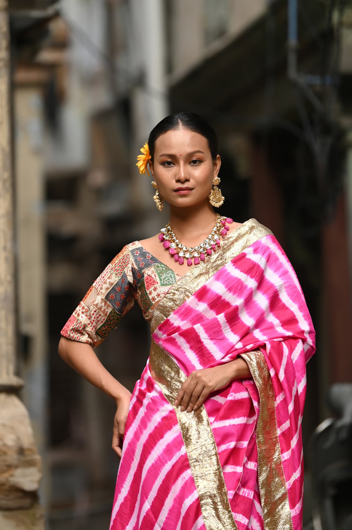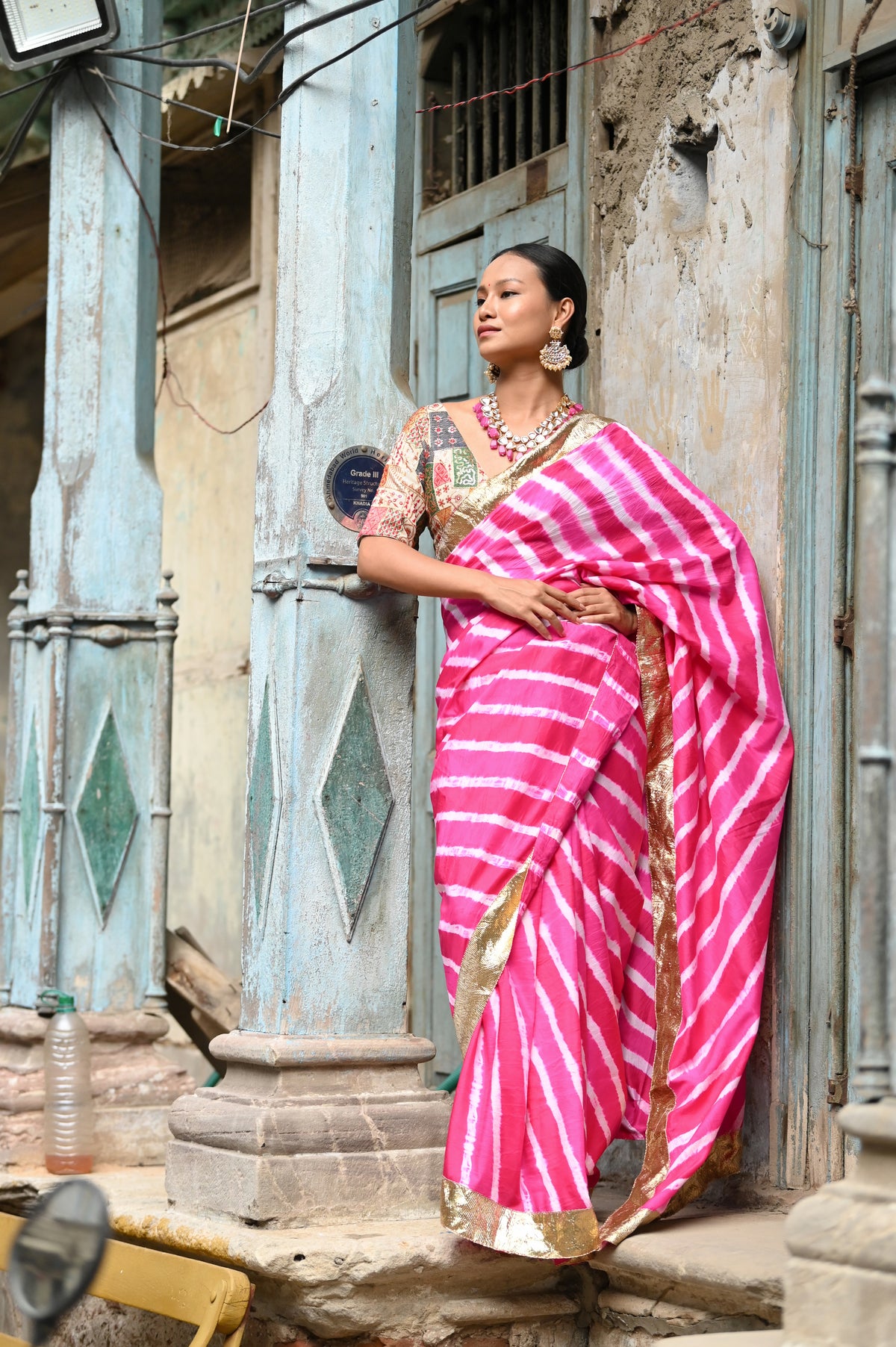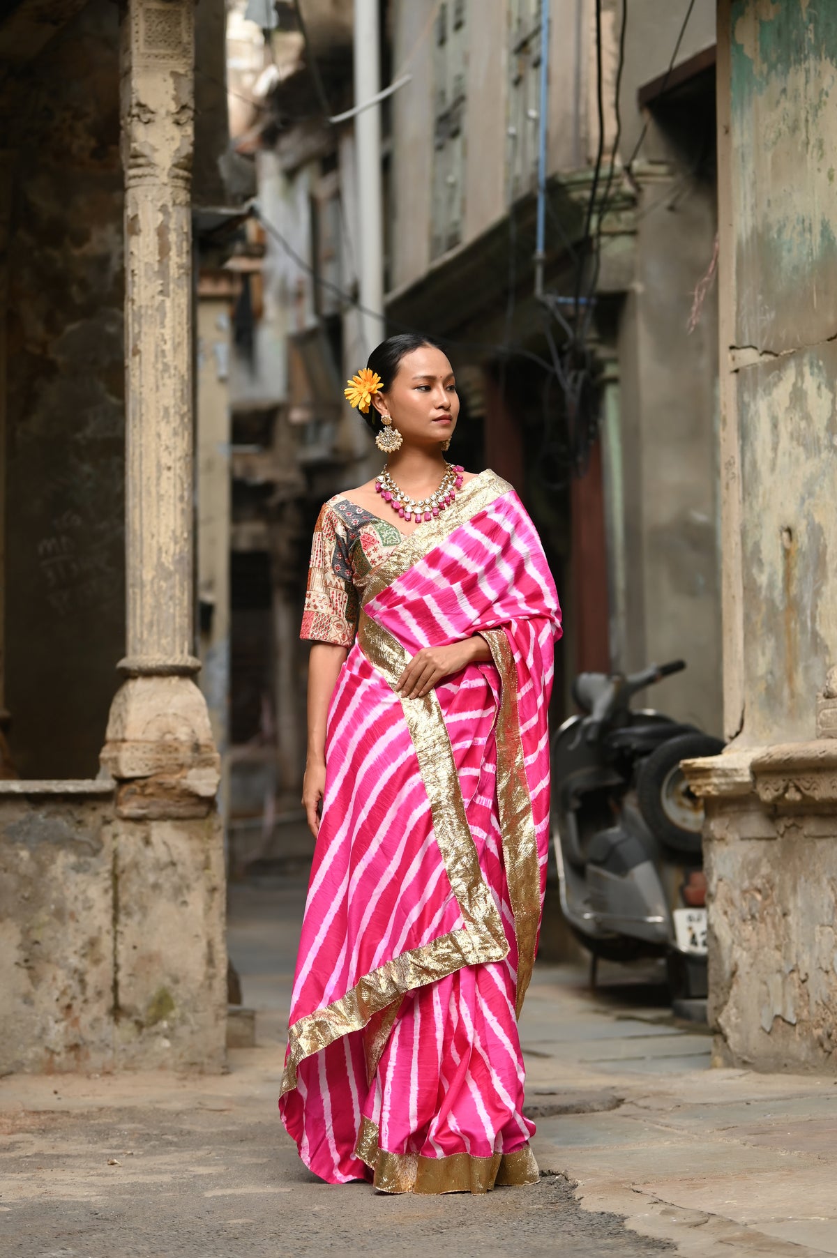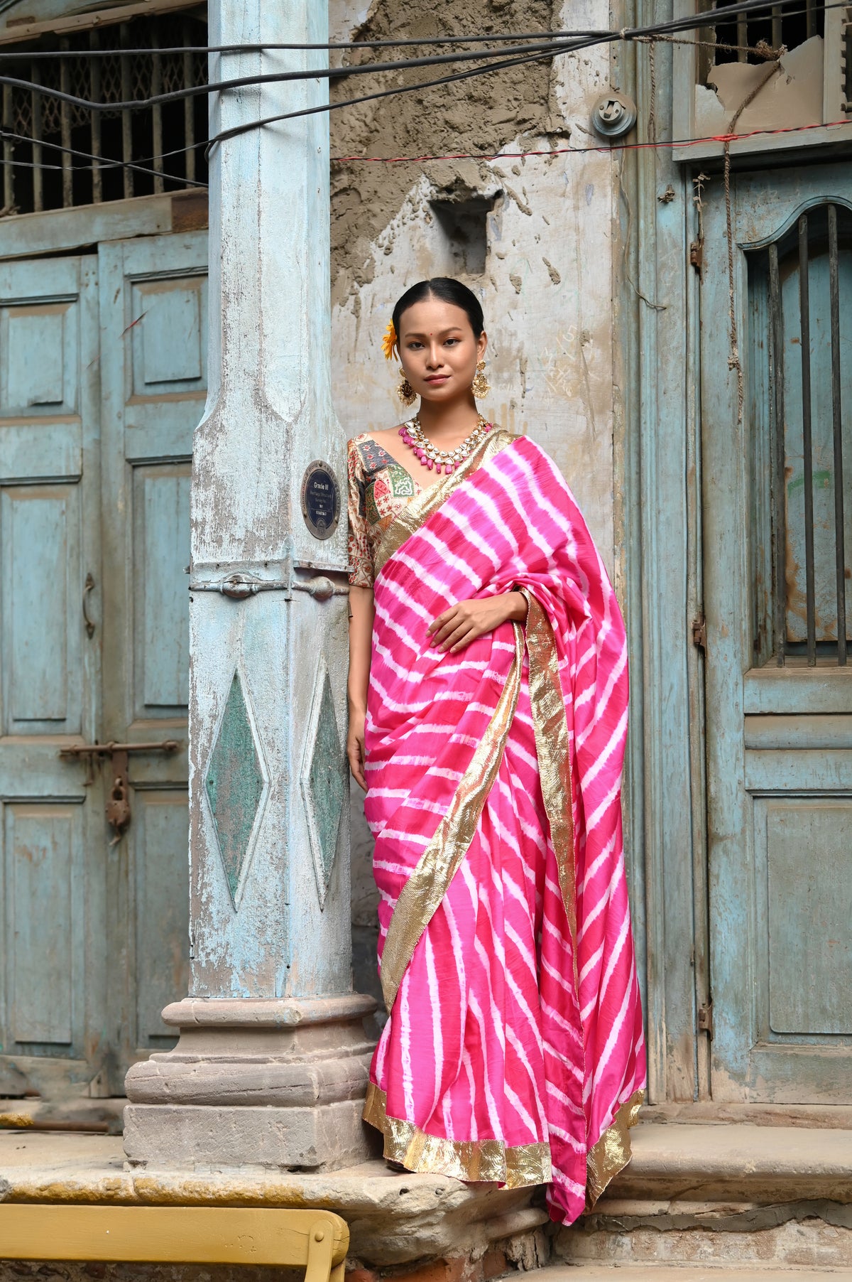 PINK LEHERIYA SILK SAREE WITH LAMPI BORDER