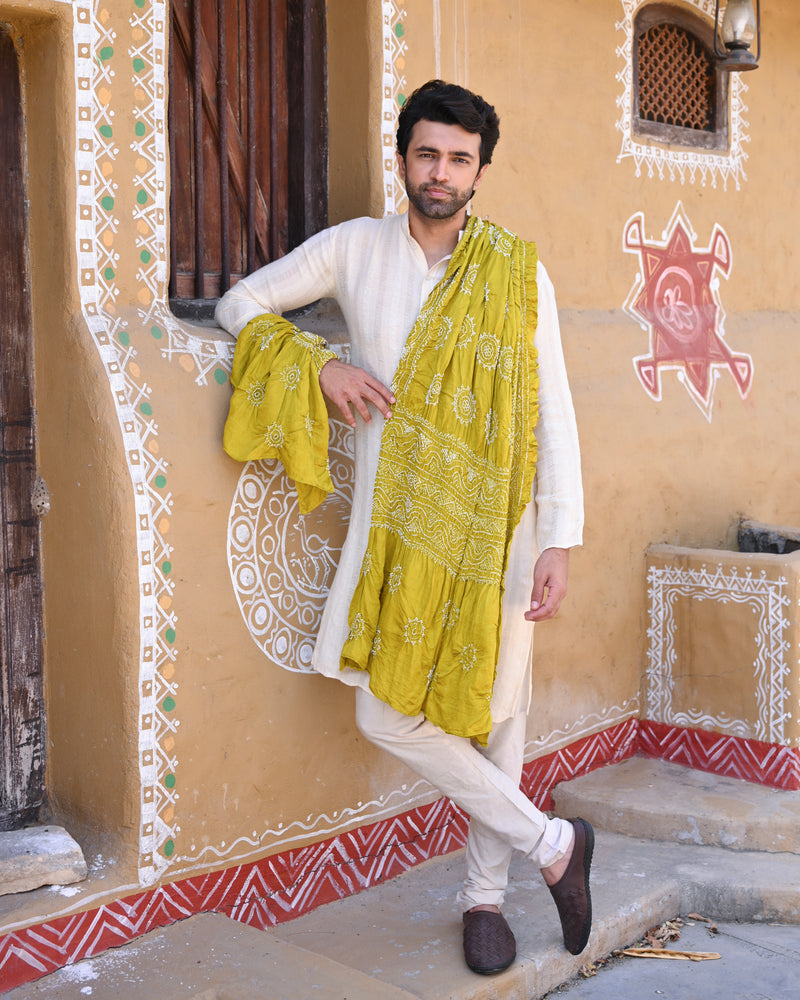 MUSTARD YELLOW CLASSIC TRADITIONAL LADDU BANDHANI SILK DUPATTA
