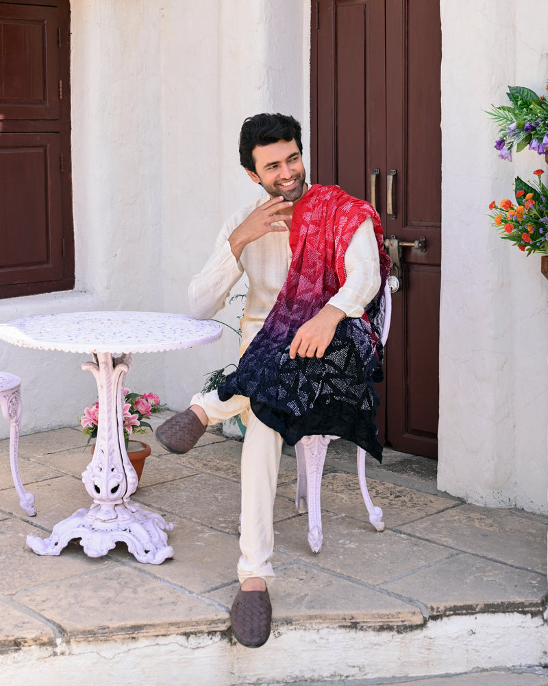 RED-BLACK TRIANGULAR GEOMETRIC BANDHANI SILK DUPATTA
