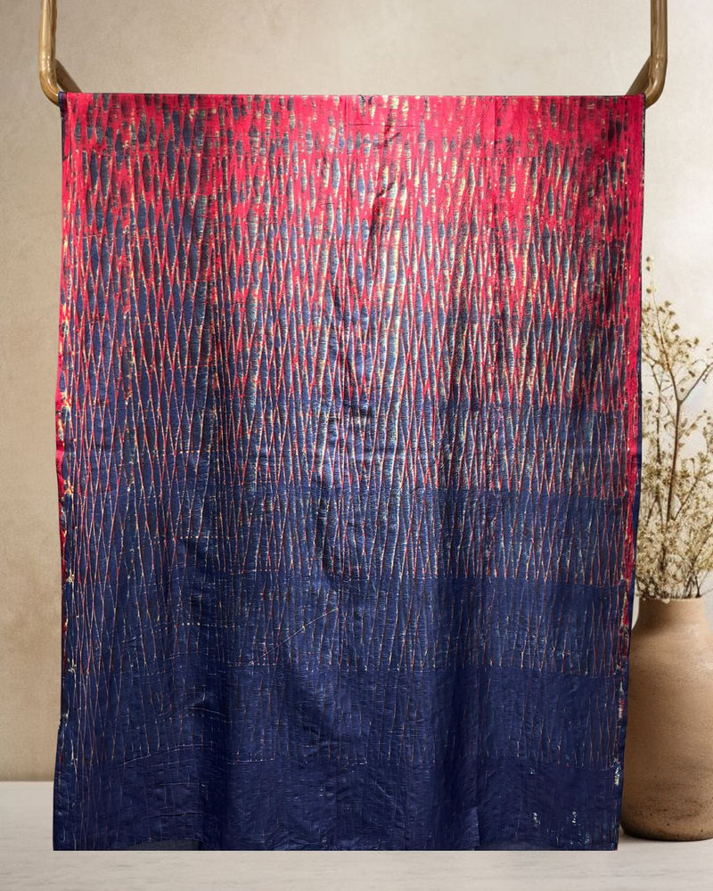 INDIGO BLUE-RED SHIBORI SILK FABRIC