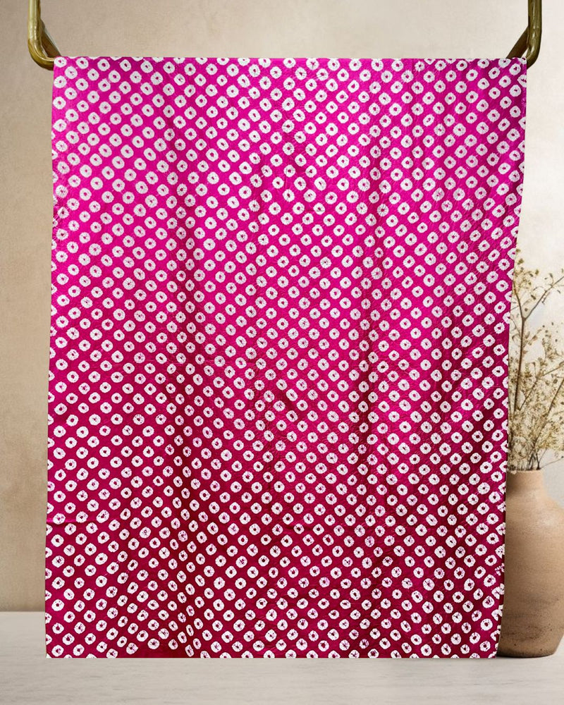 PINK BIG DOTS SILK BANDHANI FABRIC