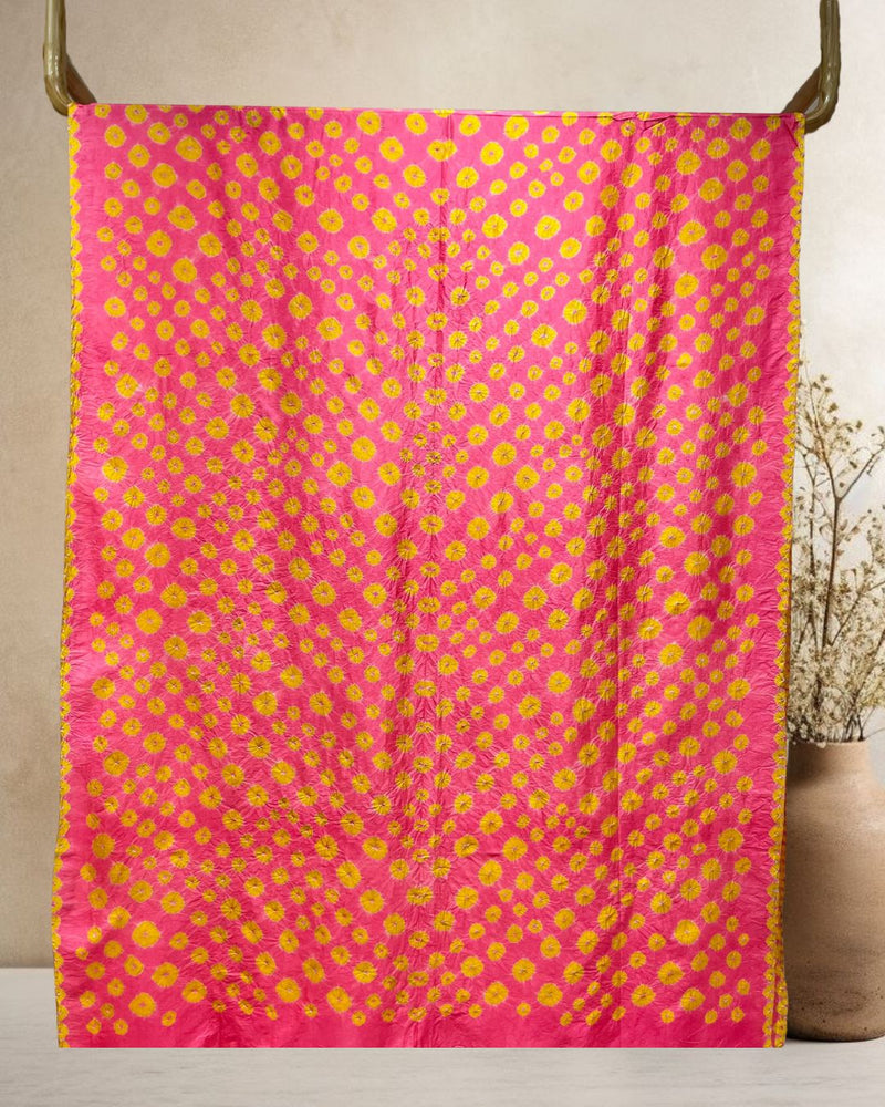 PINK BROKEN LINES BANDHANI SILK DUPATTA