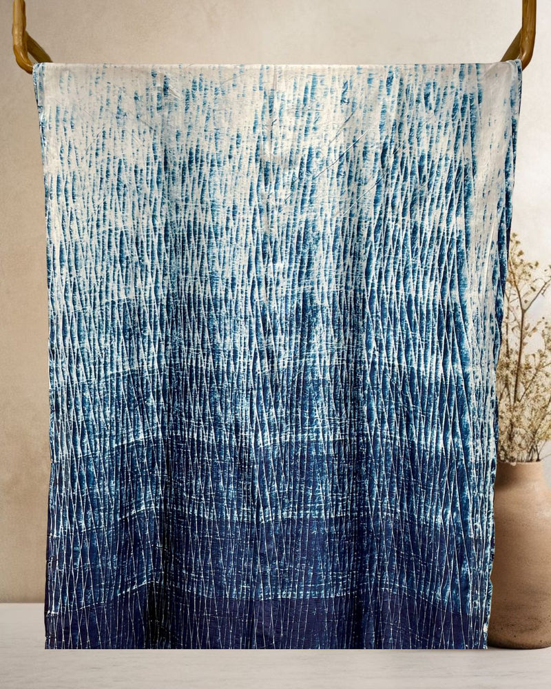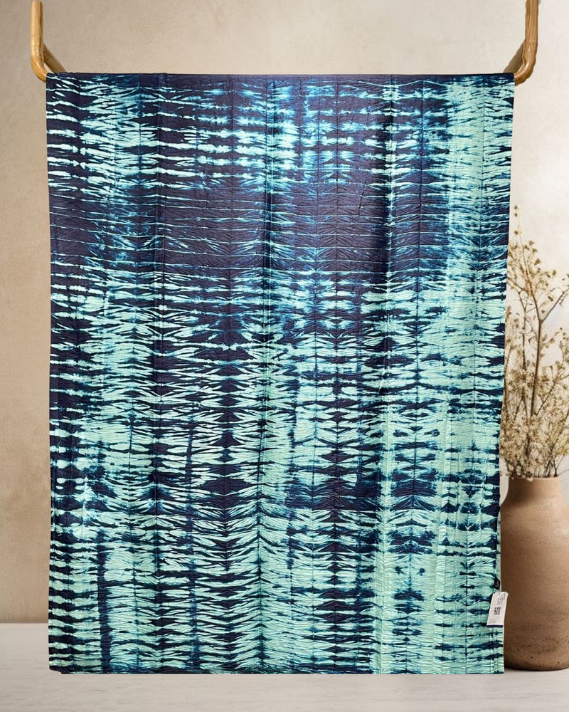 INDIGO BLUE-RED SHIBORI SILK FABRIC